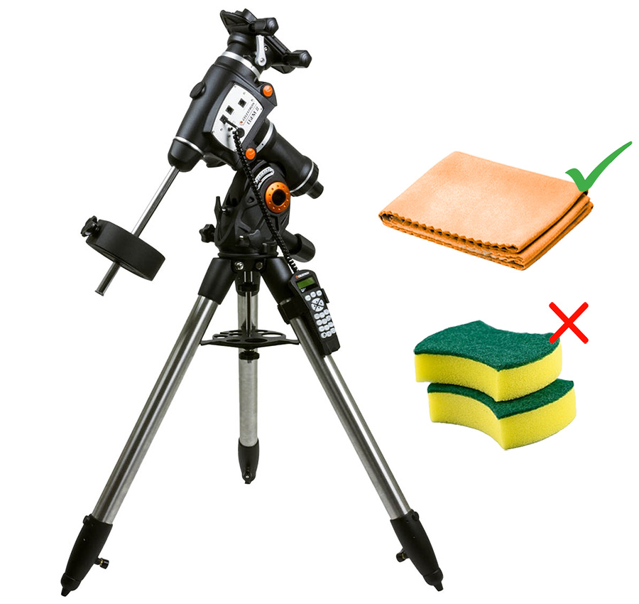 Також після виїзних спостережень варто очистити від бруду штатив та монтування — пил, листя чи волога можуть згодом пошкодити механізми. Для цього достатньо сухої м’якої серветки або пензлика.