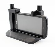 Вся ця конструкція – телефон із адаптером – встановлюється на окулярний тубус мікроскопа (або в 3-й оптичний порт). Кріплення нагадує лещата, але не з прямими «губами», а з вигнутими: для простоти цей механізм називатимемо хомутом. Максимальний діаметр хомута – 45 мм, а отже адаптер підійде до будь-якого оптичного приладу.