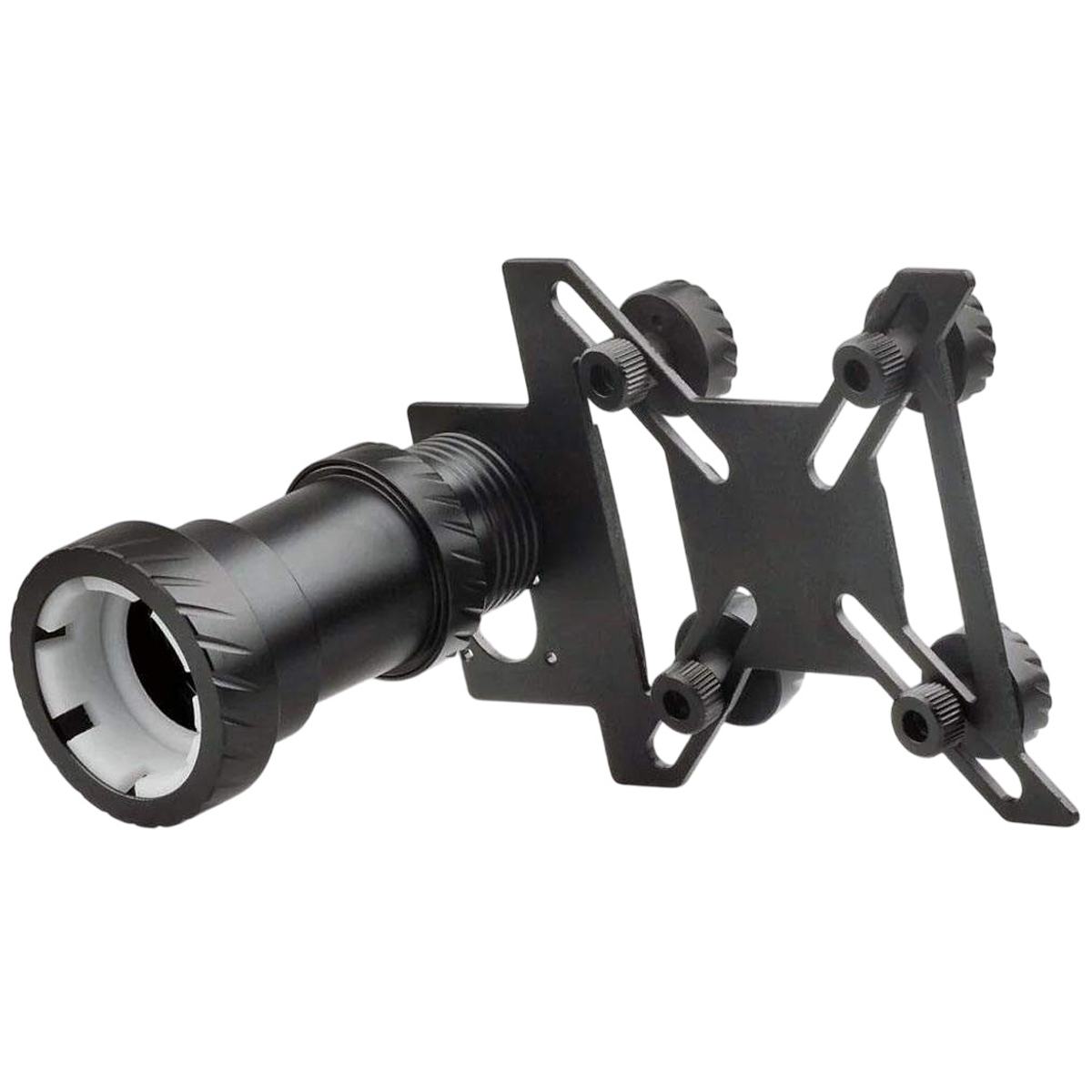 Адаптер обладнаний продуманою системою регулювання, яка дозволяє точно налаштовувати положення смартфона відносно окуляра прицілу. Користувач може коригувати фокусну відстань, щоб домогтися максимальної чіткості зображення без спотворень і затемнень по краях. Кріплення до прицілу здійснюється за допомогою надійних затискачів або різьбового з'єднання, забезпечуючи стабільність навіть під час активного використання. Такий спосіб монтажу дозволяє швидко встановити або зняти адаптер без додаткових інструментів.