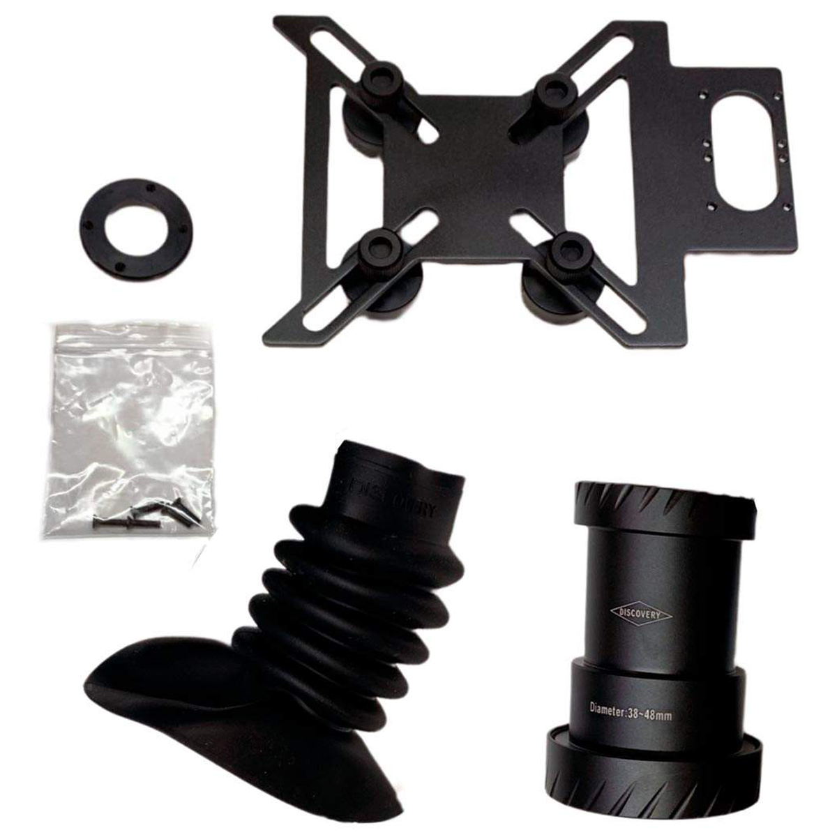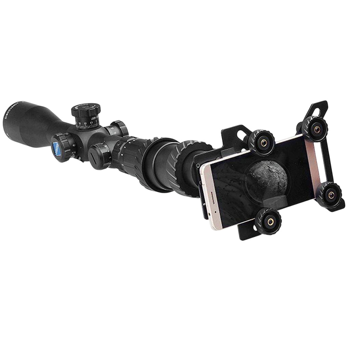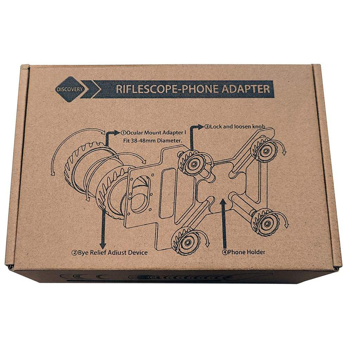 Адаптер Discovery Optics для телефона до прицілу створений для зручного поєднання смартфона з оптичним приладом. Завдяки цьому аксесуару користувач отримує можливість вести відеозапис або робити фотографії зображення, яке видно в приціл, не втрачаючи при цьому якість картинки. Конструкція сумісна з широким діапазоном прицілів та підходить для окулярів діаметром від 38 до 48 мм, роблячи адаптер універсальним рішенням для мисливців, стрільців чи спостерігачів природи.