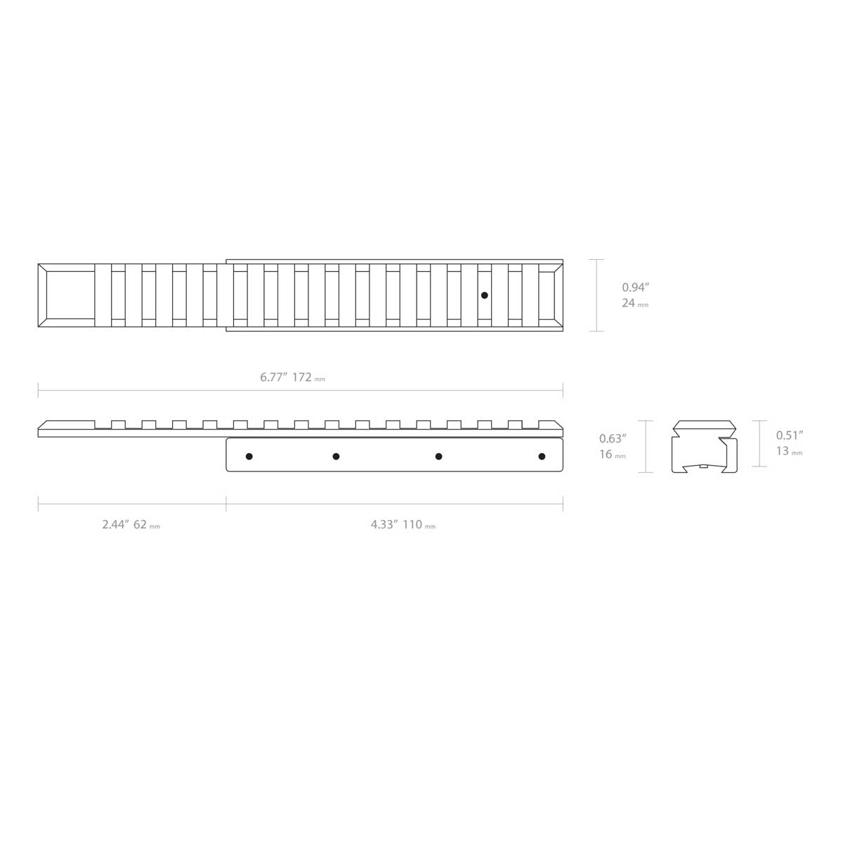 Виготовлений з високоякісного алюмінію, адаптер поєднує легкість і міцність. Алюмінієва конструкція має високу стійкість до корозії та механічних навантажень, що гарантує довговічність навіть при інтенсивній експлуатації. Висота основи 13 мм забезпечує оптимальний рівень установки, не створюючи зайвих перешкод для огляду та зручного користування прицілом.