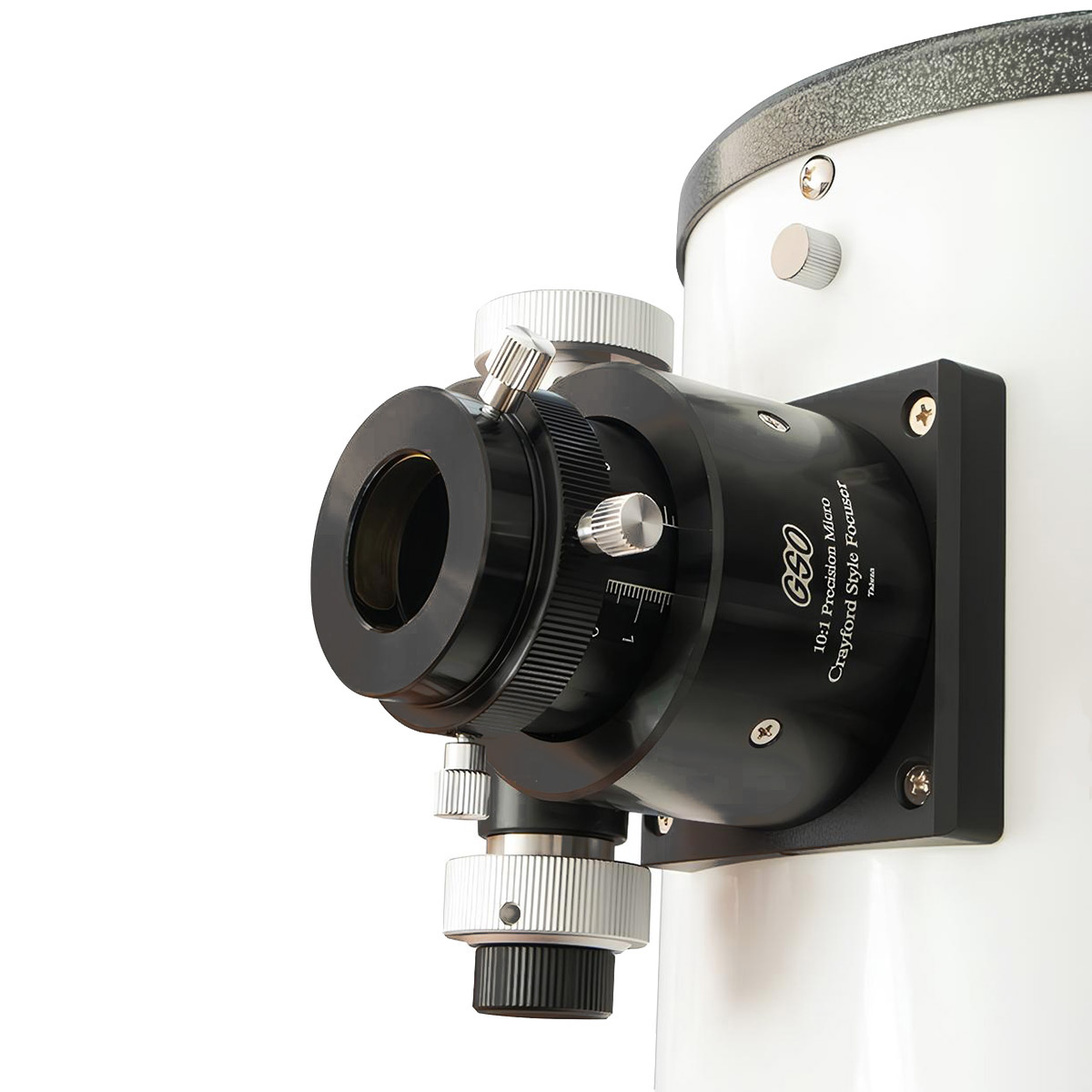 На телескопі встановлено двошвидкісний 2" фокусер Крейфорда з мікрофокусером, що забезпечує неперевершену точність фокусування без найменших люфтів, а позаду знаходиться вентилятор для охолодження головного дзеркала. Конструкція оптичної труби дуже міцна, всі її деталі надійно фіксуються.