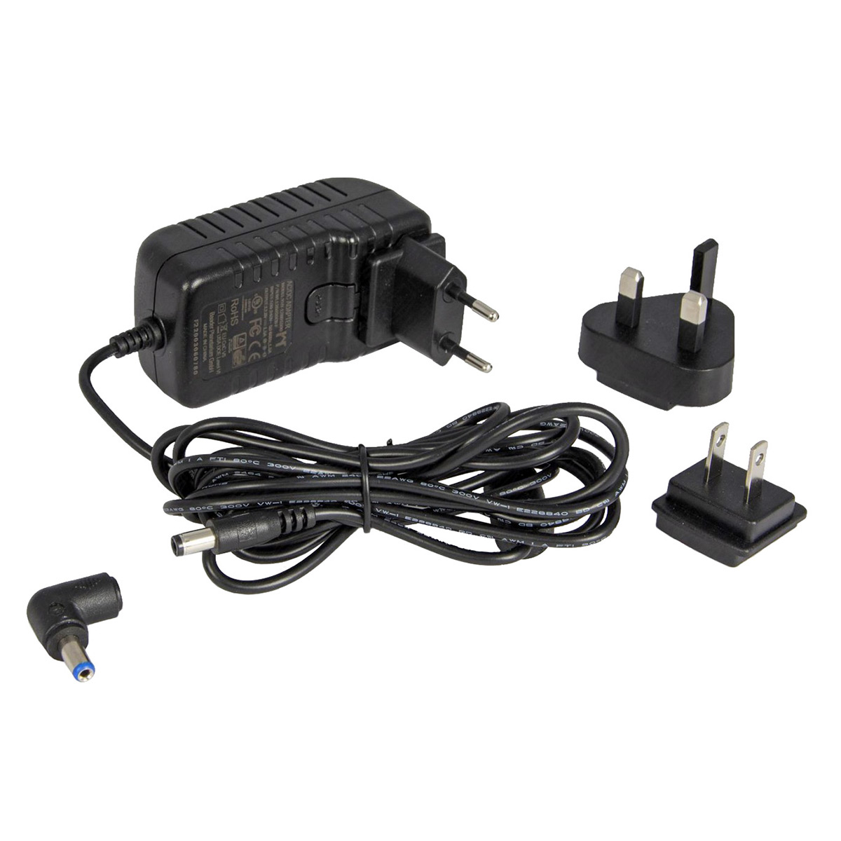 Даний мережевий адаптер вирізняється фіксованою напругою 12.8 В/1.5 А, кутовою вилкою із захистом від неправильної полярності та захисним вимкненням, знімними штекерами для ЄС/США/Великобританії.