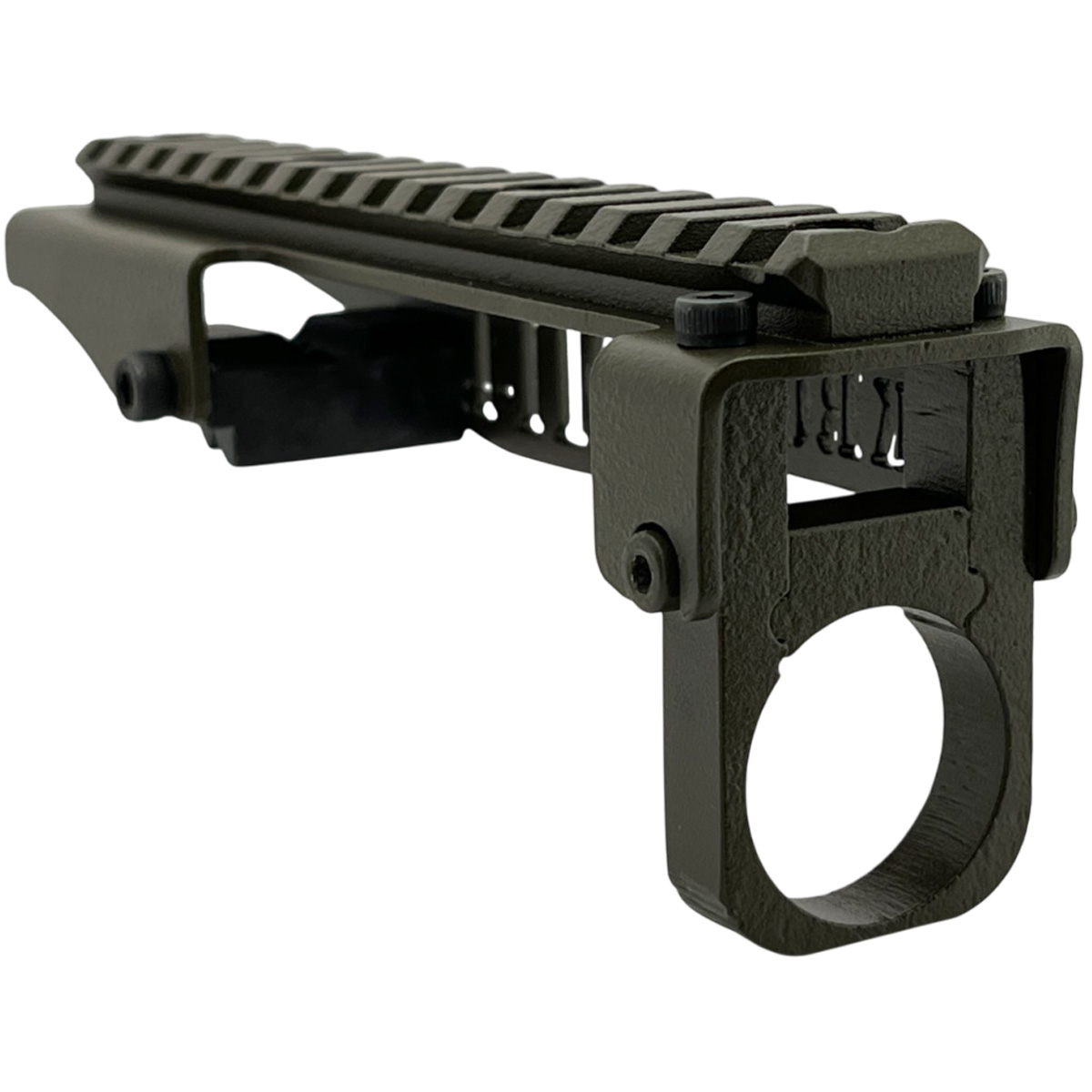 Передня опорна частина бази жорстко закріплена за ствольну коробку, що забезпечує прямий контакт і надійну передачу навантажень від прицілу на корпус гвинтівки. Замість стандартної планки прискореного заряджання (за «ластівчин хвіст») встановлена спеціальна база, яка створює опору позаду і дозволяє рівномірно розподілити навантаження, мінімізуючи люфти та деформації під час стрільби. Планка Picatinny на базі має можливість тонкого регулювання в горизонтальному та вертикальному напрямках, що дає змогу точно позиціювання приціл для швидкого встановлення нульової точки та коригування для різних відстаней. Така конструкція зберігає повну функціональність механічних частин гвинтівки й не вимагає модифікацій штатного ствольного механізму.