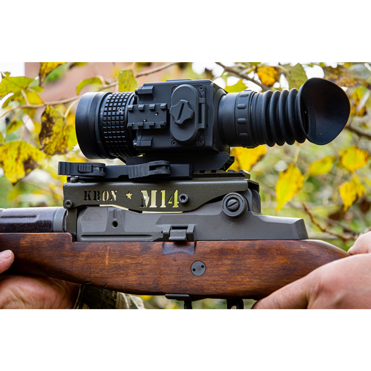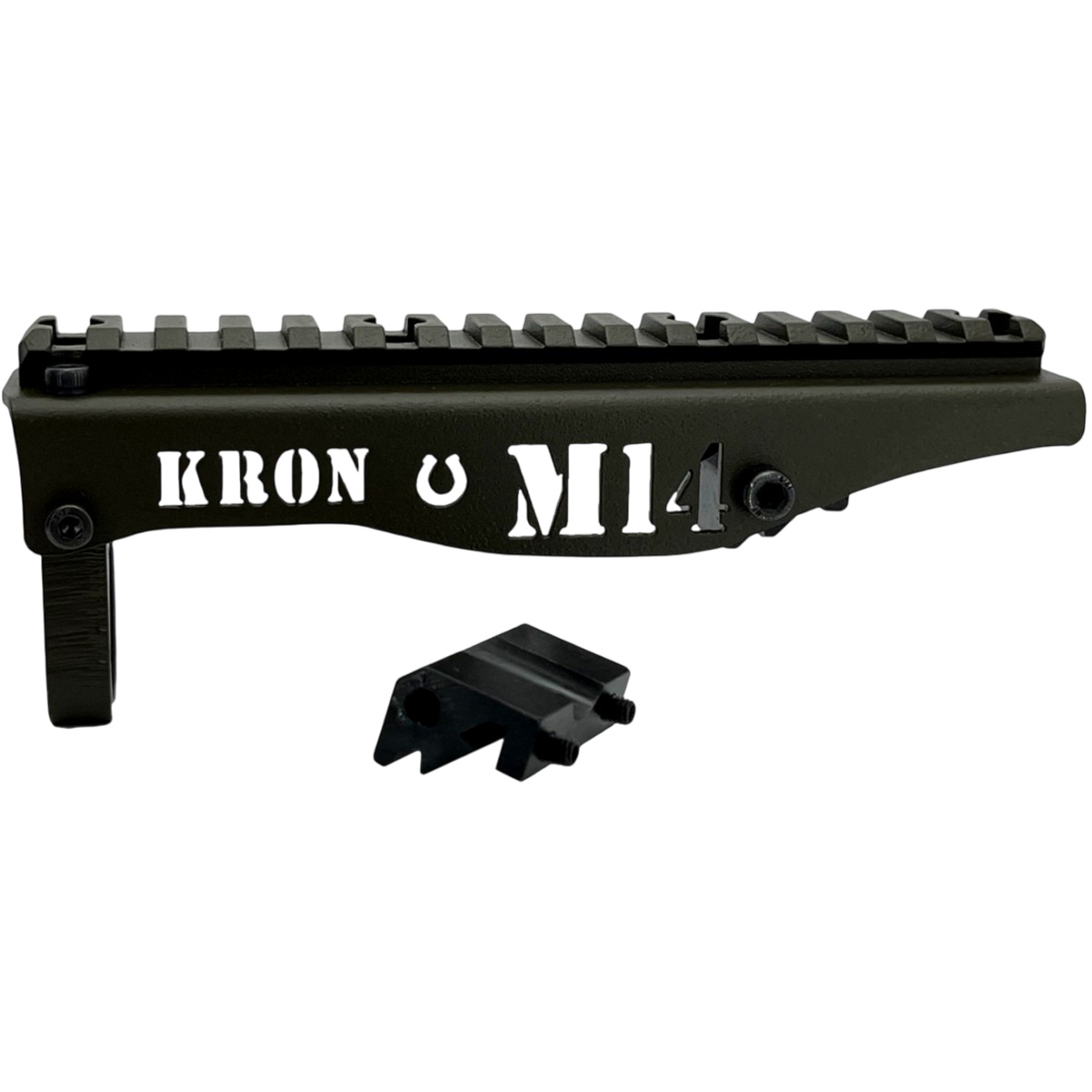 Бази КРОН M-14 — інженерно монтажне рішення, створене спеціально для встановлення оптичних прицілів та сумісних аксесуарів з посадовим місцем Picatinny (160 мм) на гвинтівку M-14 Garant калібру .308 Win. Завдяки своєму дизайну база не потребує наявності бокової планки типу «ластівчин хвіст», що дозволяє встановлювати сучасні приціли та прилади без додаткового переобладнання зброї або нестандартних адаптерів. Моноблокова конструкція розрахована на інтенсивну експлуатацію в польових умовах і зберігає стабільність нульової точки навіть після повторних демонтажів і монтажів.