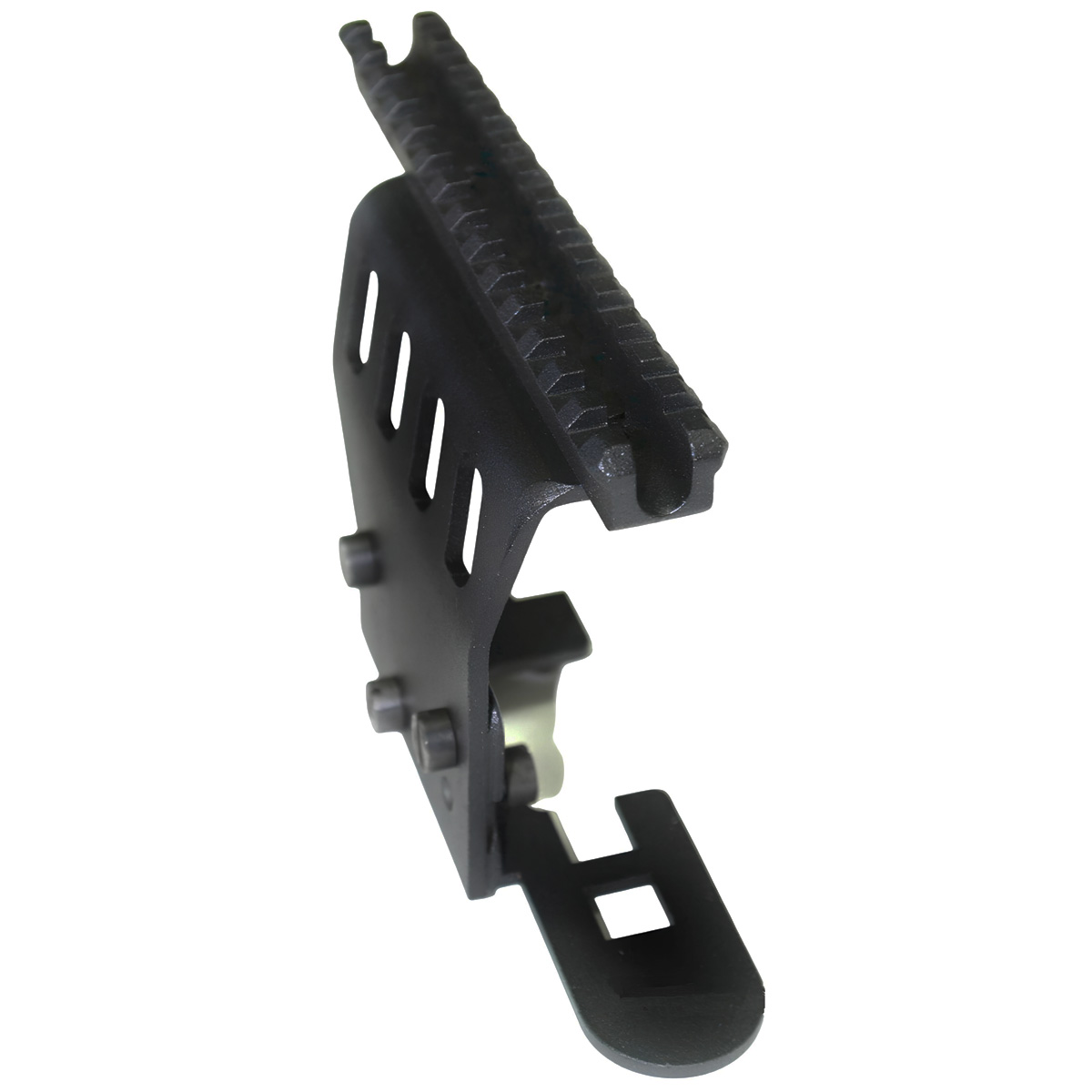 Кронштейн кріпиться під штатне руків’я автомата за допомогою його гвинта та фіксується в отворі під защіпку магазину, гарантуючи точне й стійке розташування без змін конструкції власних прицільних пристроїв зброї. Це дозволяє зберегти можливість використання штатних механічних прицілів незалежно від встановленої оптики — при необхідності стрілок може користуватися як оптичним прицілом, так і механічними прицільними пристроями, не втрачаючи працездатності жодного з них. Монтаж і демонтаж виконуються просто й оперативно, що робить кронштейн зручним для тактичних переходів і полювання.