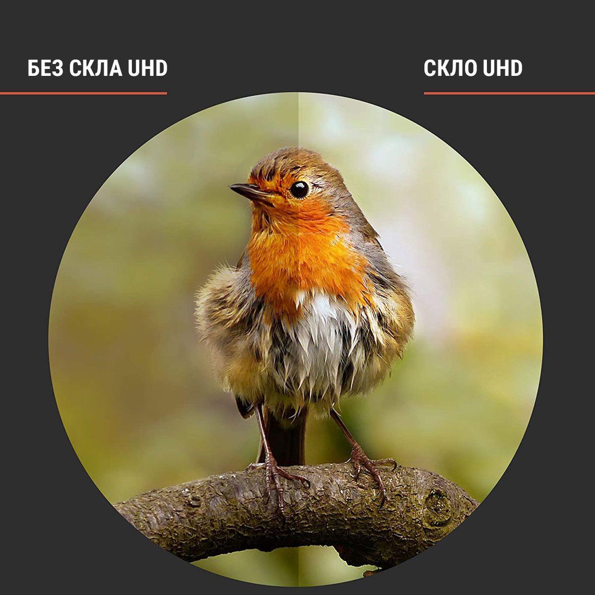 Використання скла UHD із наднизькою дисперсією покращує деталі, передає чітку та яскраву картинку з високою різкістю та контрастністю. Лінзи мають діелектричне покриття ESP для відображення 99% світлових променів та покриття XPL для захисту від дрібних подряпин та пилу.