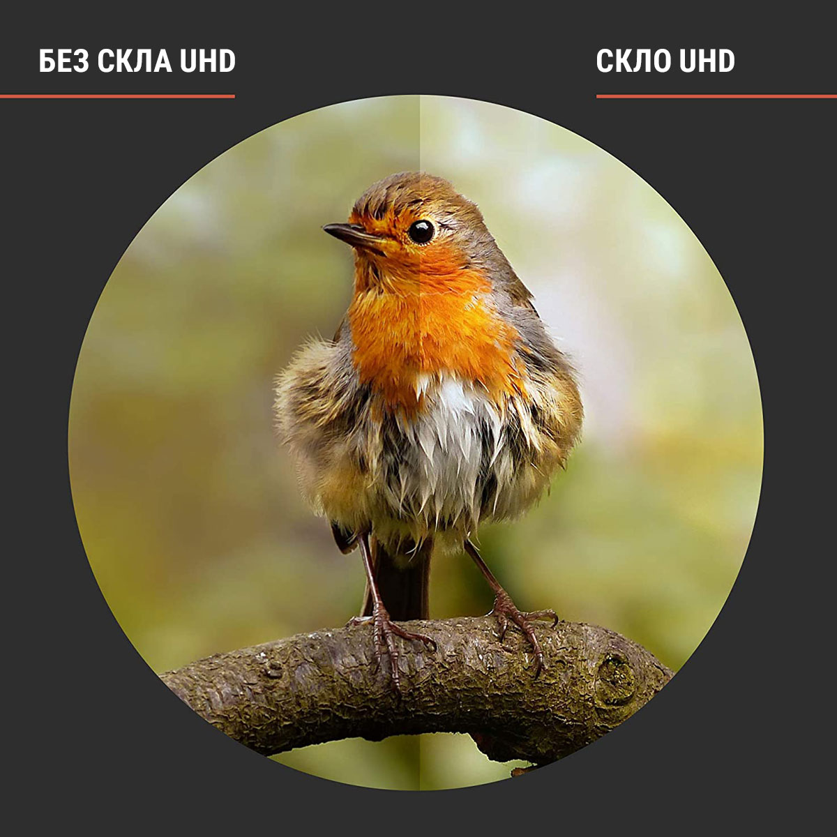- Лінзи: UHD-скло з наднизькою дисперсією, з покращеним повним багатошаровим просвітленням (Advanced Fully multi-coated) та захисним гідрофобним покриттям (XPL Protective Coating)