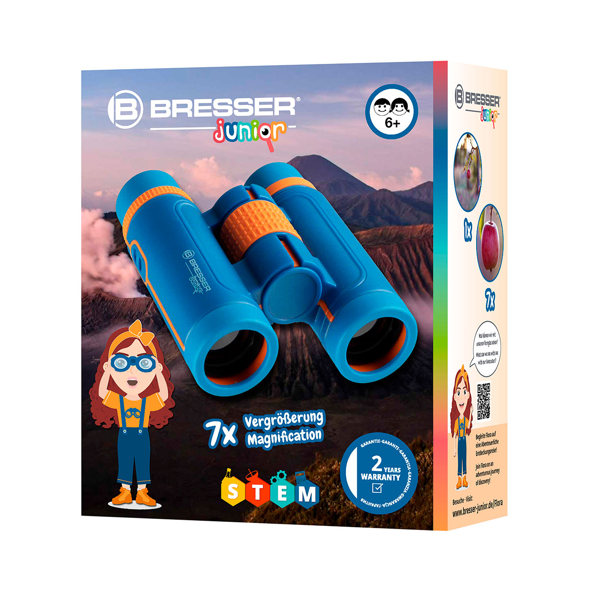 Особливостями Bresser Junior 7x30 є зручне розташування центрального колеса фокусування з великим барабаном для швидкого перемикання між об’єктами, а також регульована міжзінична відстань для налаштування комфортного положення приладу відповідно до рівня очей за допомогою поворотно-висувних наочників. Додатково дана модель вирізняється діоптрійним коригування для ругулювання чіткості зображення та механізмом центрального фокусування з метою налаштування необхідної різкості в лінзах.