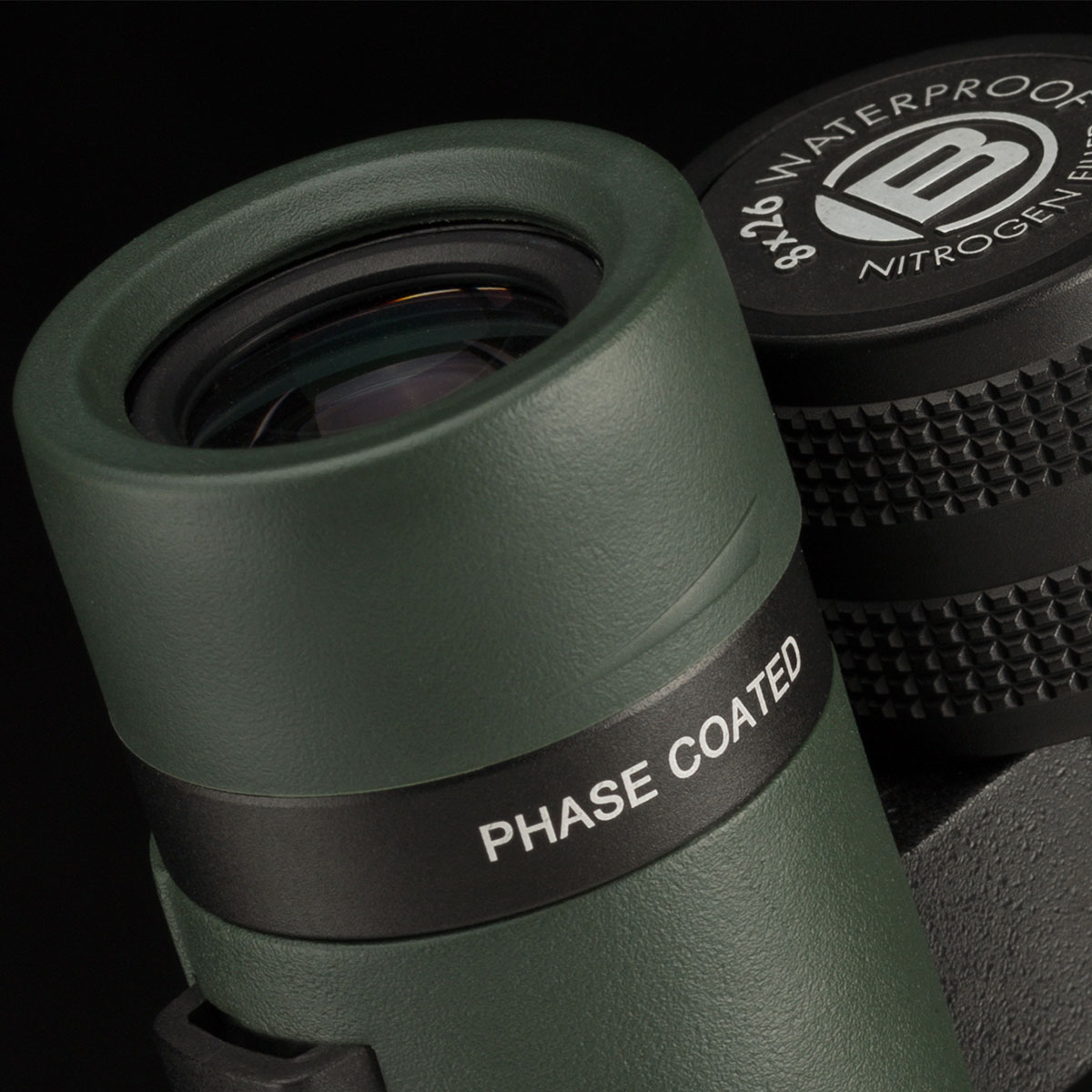 Bresser Pirsch 8x26 UR WP Phase Coating – це універсальна модель бінокля, яка виділяється невеликими габаритами та якісною передачею зображень. Бінокль має збільшення 8х, діаметр об'єктива 26 мм, широке поле зору (117 м на 1 км), кутове поле зору 6.69°, а діаметр вихідної зіниці складає 3.25.