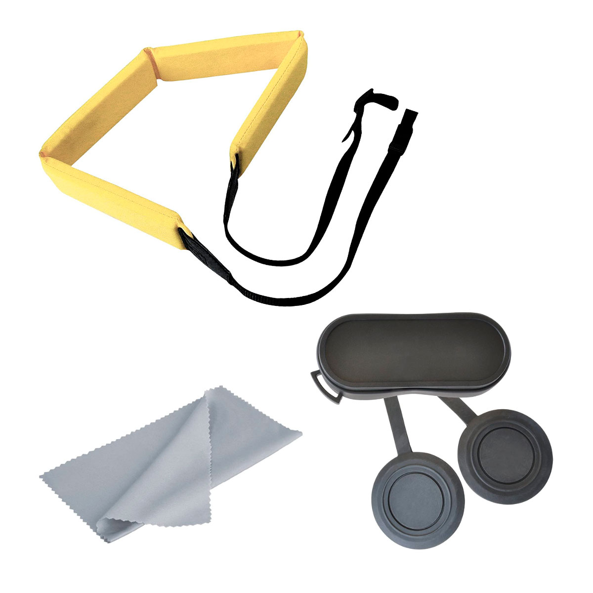 В комплектацію входить наповнений повітрям шийний ремінь яскраво-жовтого кольору – якщо бінокль випадково впаде за борт, ремінь залишиться на воді, що дозволить швидко виявити пристрій.