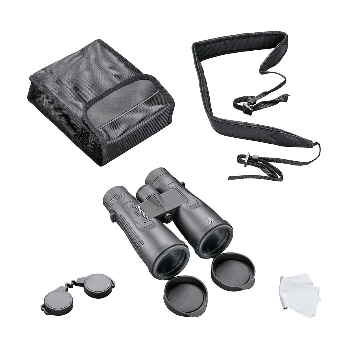 Bushnell Legend 10x50 – якісний та універсальний бінокль, який призначений для використання на середніх та великих відстанях. Цьому сприяє оптичне збільшення 10х та об'єктив 50 мм. Поле зору на 1000 м становить 91 м, кут огляду – 5.2°, а мінімальна дистанція фокусування складає 5.2 м.