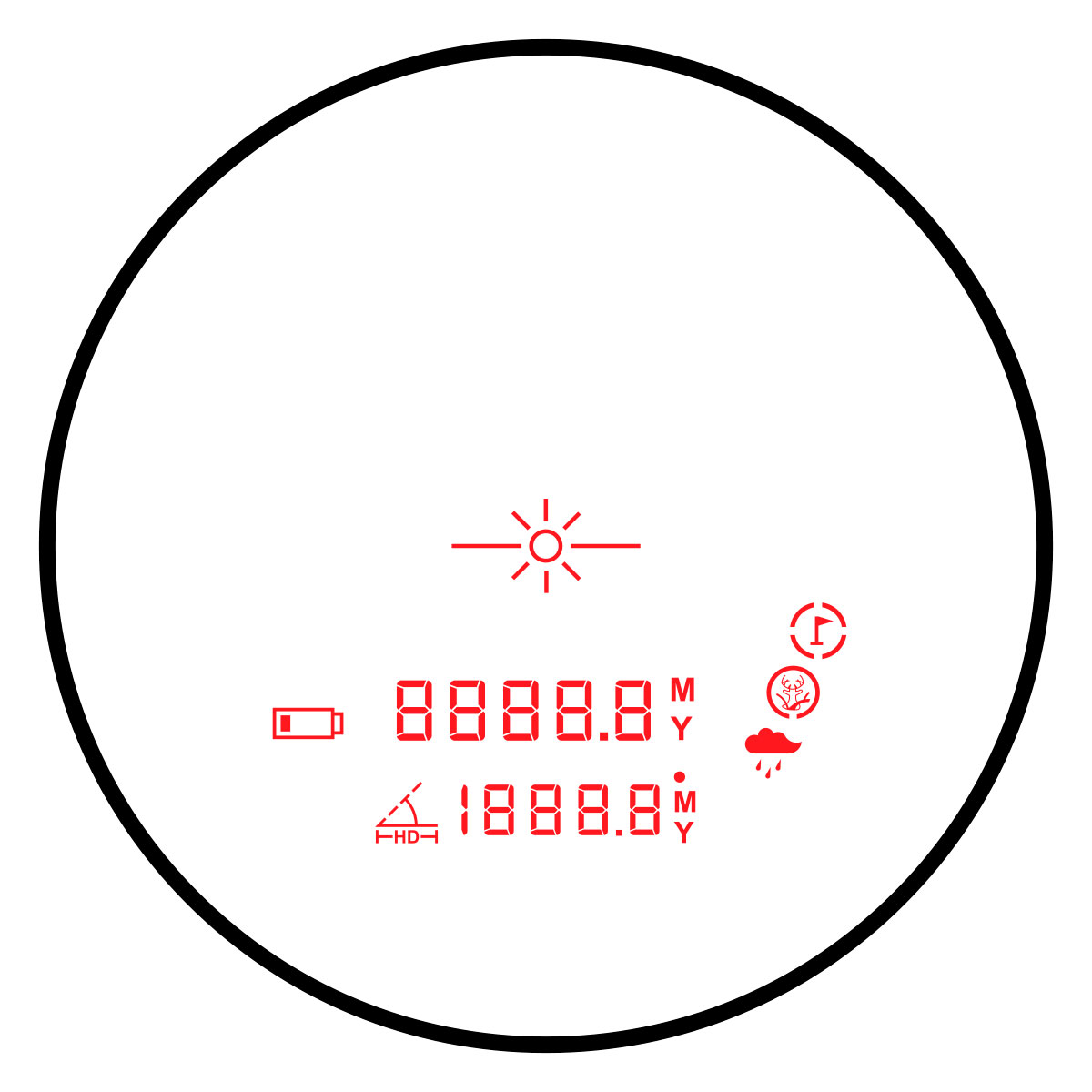 - RAIN – для вимірювання реальної дистанції до об'єкта у просторі під час дощу, без урахування ухилу. Ігнорування інтерференції падаючих крапель дощу. Дистанція вимірювань має перевищувати 30 м (33 ярди). У цьому режимі відображається піктограма хмари