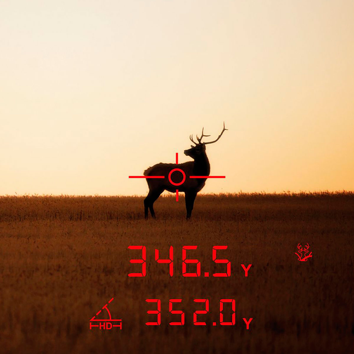 - HD (Horizontal Distance) – для виміру дистанції до об'єкта по горизонталі (проєкції реальної дистанції на горизонтальну поверхню). Дуже корисно, що в даному режимі одночасно відображається реальна дистанція до об'єкта та її проєкція на горизонтальну вісь. Такий режим необхідний для обліку траєкторії падіння кулі при полюванні в горах, коли ведеться постріл під великим кутом до горизонту. У цьому режимі відображається знак кута з написом HD