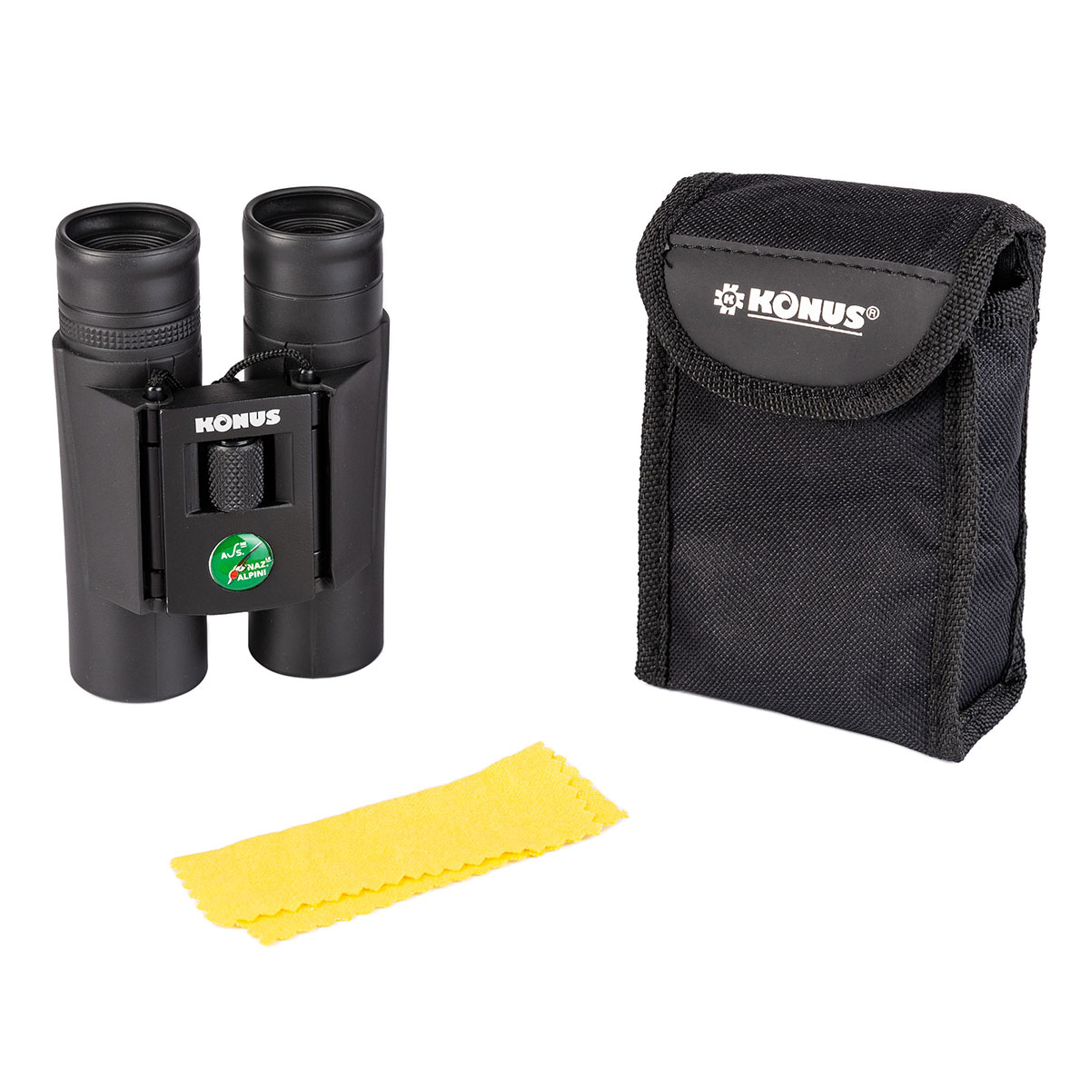 Бінокль Konus ALPINI 10х25 призначений для активного туризму в засніжених горах, де невелика вага та зручність використання пристрою є вирішальним фактором. 200-грамовий бінокль з Roof-призмами та багатошаровим просвітленням оптики відмінно впорається зі своїм завданням під час подорожей дикою природою, дослідження міста або перегляд спортивного заходу з трибуни. Конструкція корпусу дозволяє скласти бінокль до невеликих розмірів, тому Konus ALPINI 10x25 досить просто поміщається в більшості кишень куртки та легко переноситься.