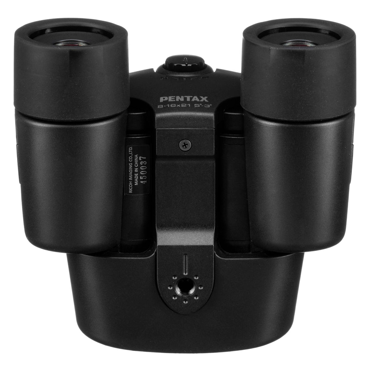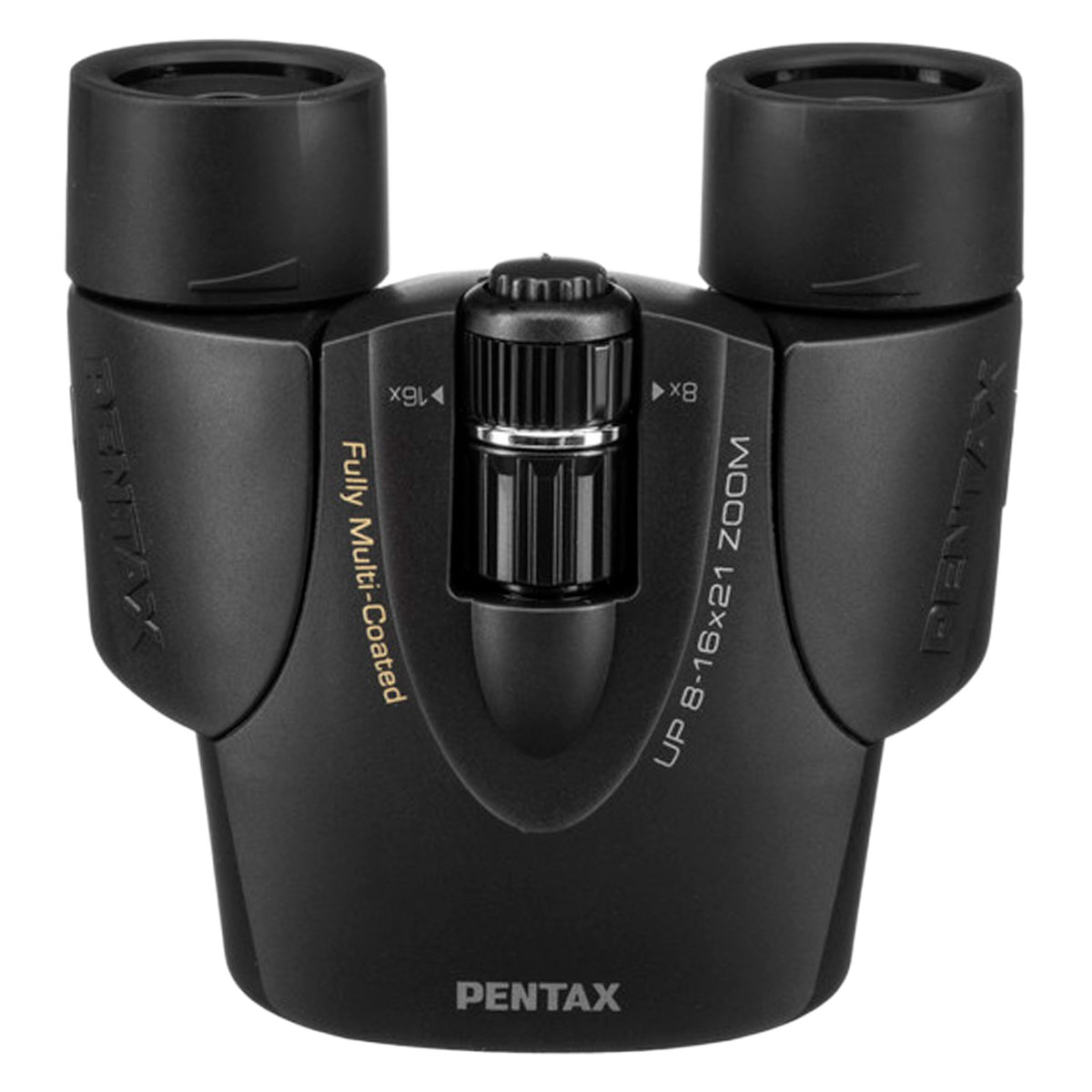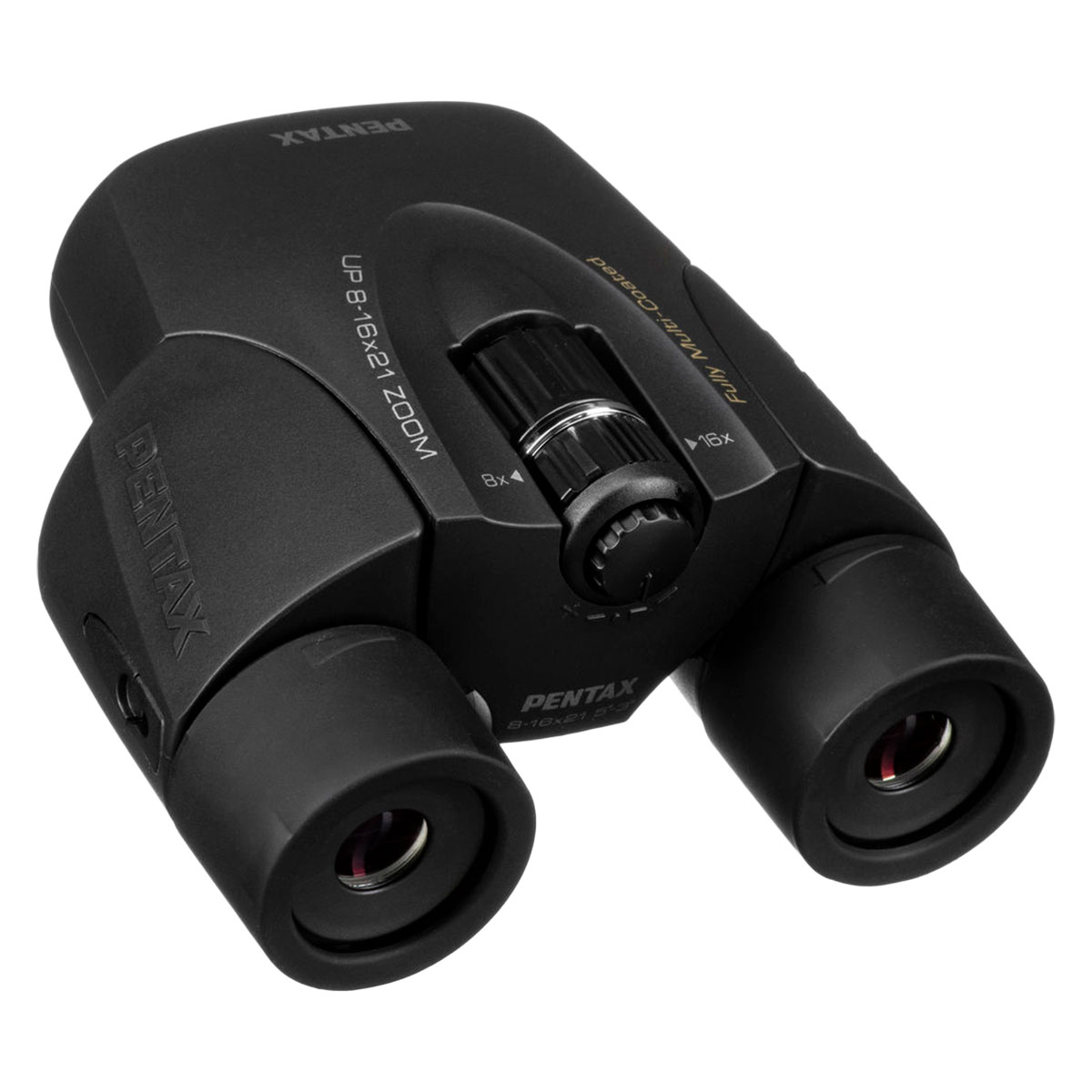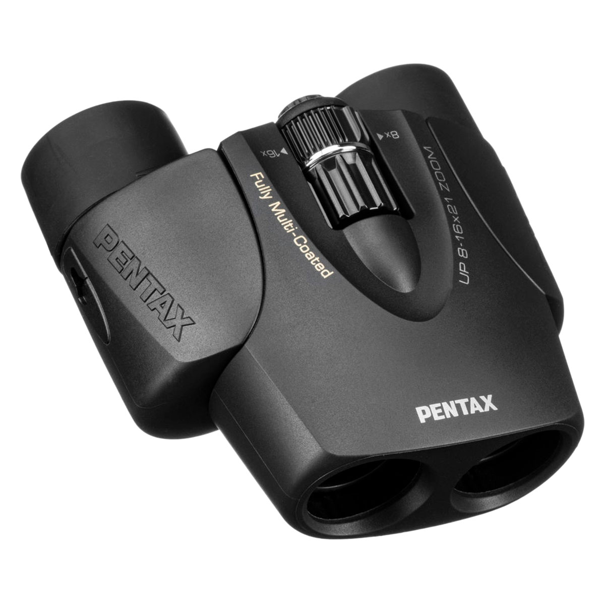 Pentax UP 8-16x21 – ергономічний та універсальний бінокль для щоденних спостережень зі змінним збільшенням у діапазоні від 8х до 16х. Прилад має об'єктив 21 мм, широке поле зору (від 87 до 52 м на 1 км), Porro-призми з барієвого крона (BAK-4) та лінзи з повним багатошаровим просвітленням.