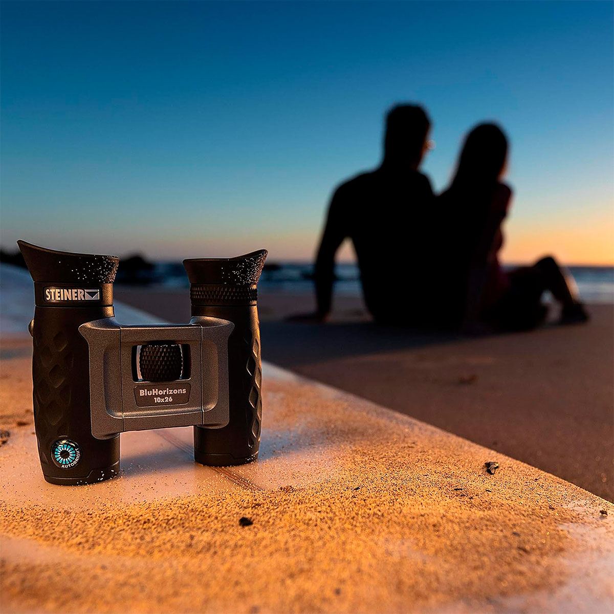 Steiner BluHorizons 10x26 – компактний та ергономічний бінокль, який завжди можна взяти з собою у будь-яку подорож. Він має оптичне збільшення 10x, об'єктив 26 мм та досить широке поле зору – 98 м на 1 км. Мінімальна дистанція для фокусування – 3 м, діаметр вихідної зіниці й віддалення вихідної зіниці складає 2.16 мм та 12.4 мм відповідно.