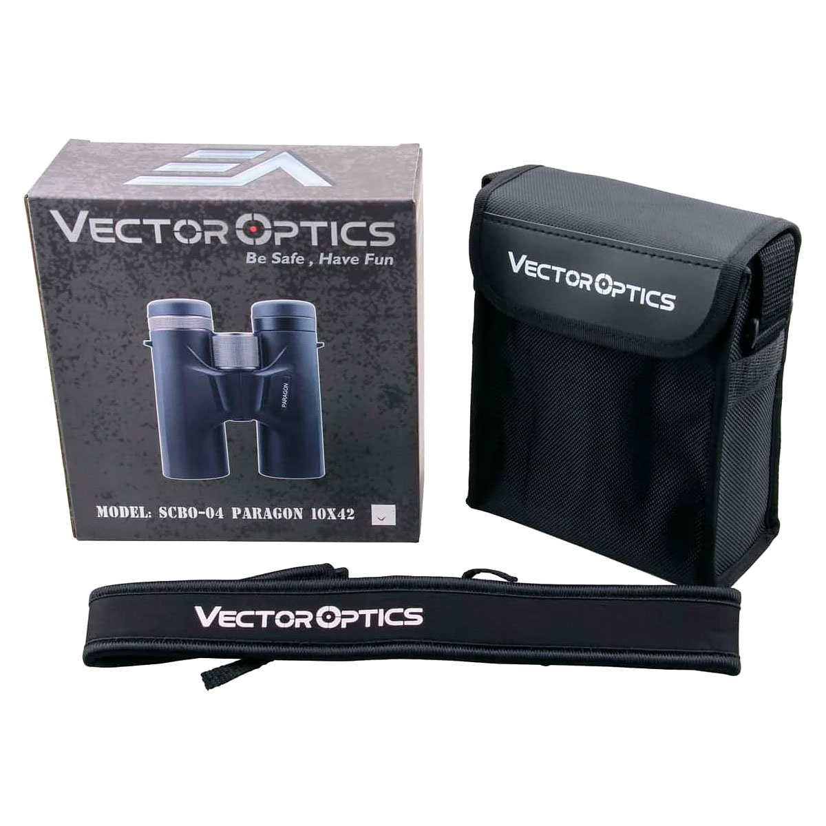 Vector Optics Paragon 10x42 Roof – універсальний бінокль для різних типів спостереження, який задовільнить потреби як початківців-любителів, так і більш професійних користувачів, мисливців, охоронців тощо. Він має 10-кратне оптичне збільшення, об'єктив діаметром 42 мм, кут огляду 6.3° та досить широке поле зору – 110 м на 1 км.