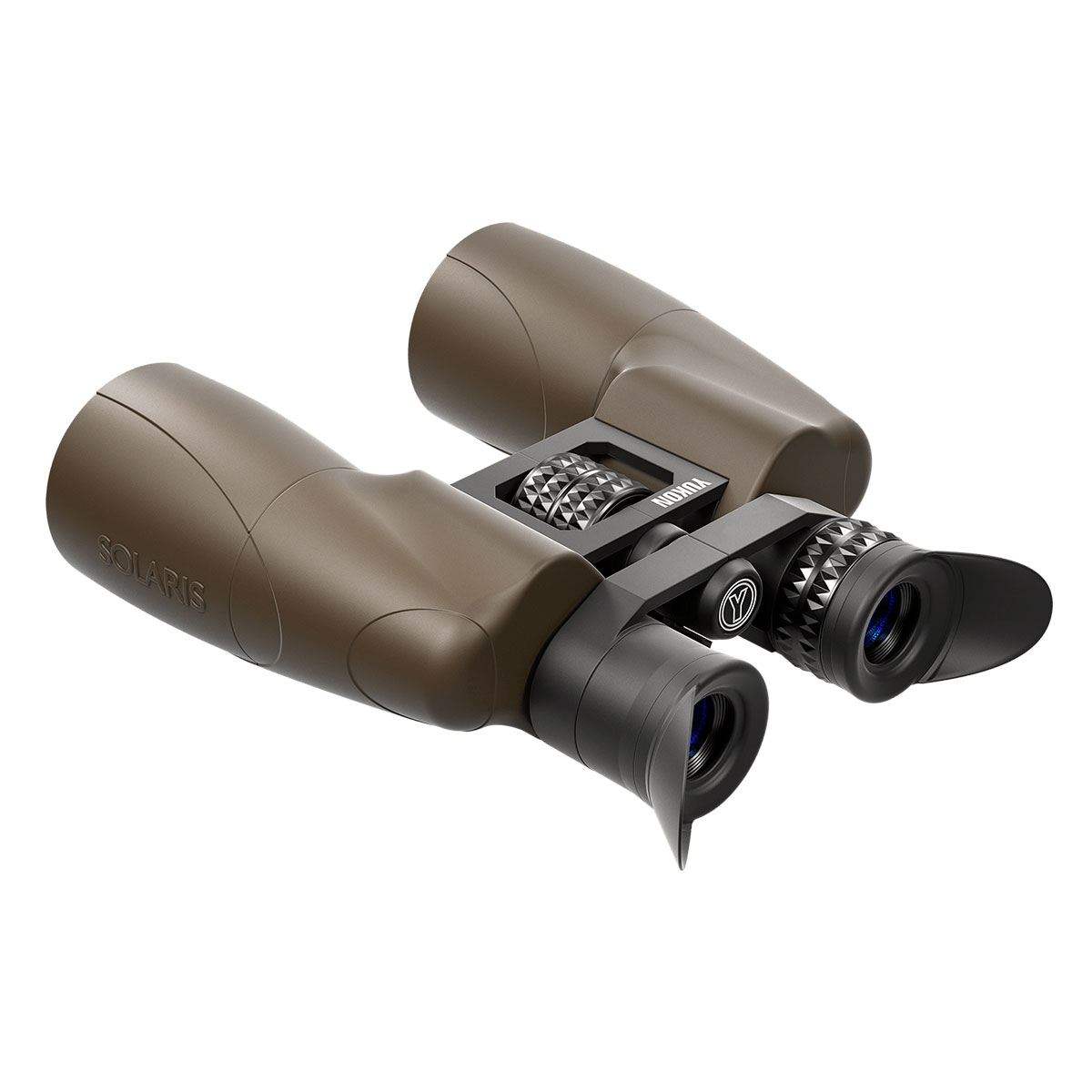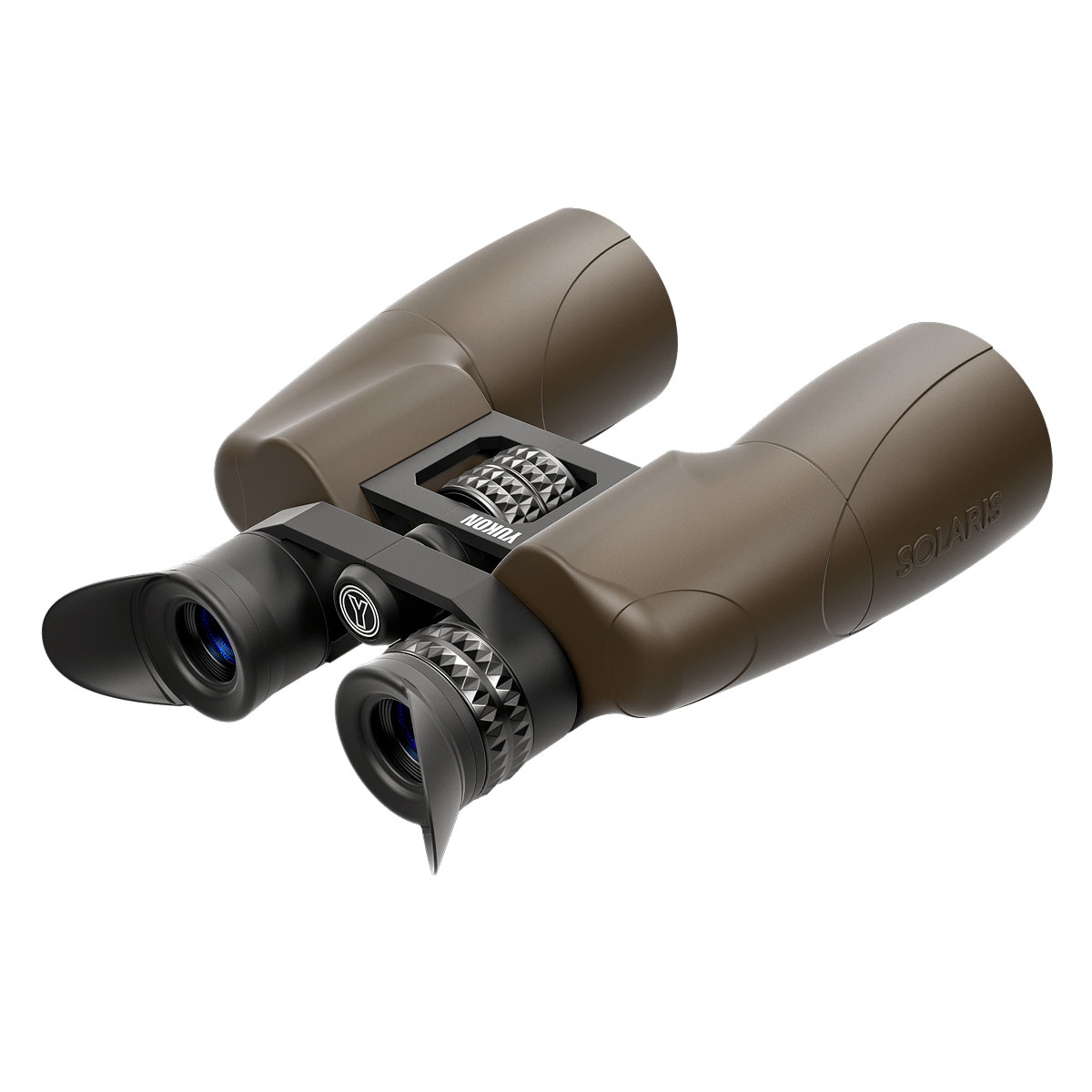 Yukon Solaris 7x50 WP має герметизацію класу IPX6, що робить бінокль стійким до водяних струменів дуже високого тиску. Прогумований корпус посилює зчеплення з руками або рукавичками користувача, що особливо важливо під час дощу чи снігу. Конструкція бінокля заснована на паралельних шарнірних з'єднаннях тубусів із центральним мостом, всередині якого знаходиться барабан фокусування.