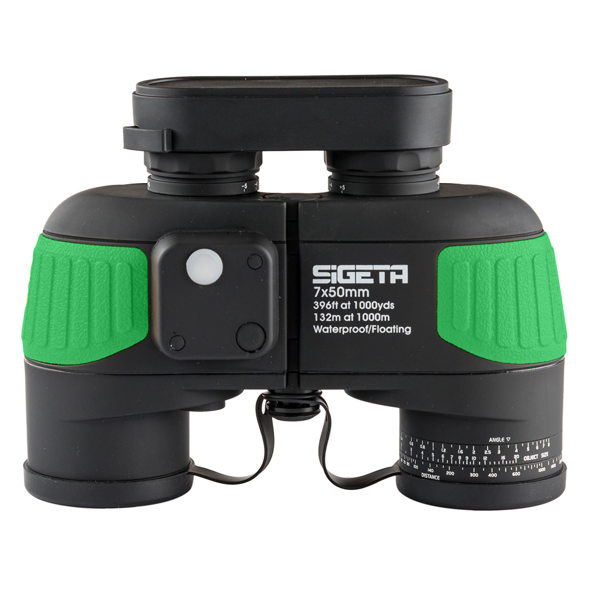 SIGETA Admiral 7x50 Green floating/compass/reticle – професійний тактичний бінокль, адаптований під екстремальні умови. Має якісну оптику, вбудований компас і далекомір. Пристрій повністю водонепроникний, наповнений азотом, не тоне у воді та має міцний корпус, що дозволить використовувати його у військових, мисливських цілях, на водоймах і на болотистій місцевості.