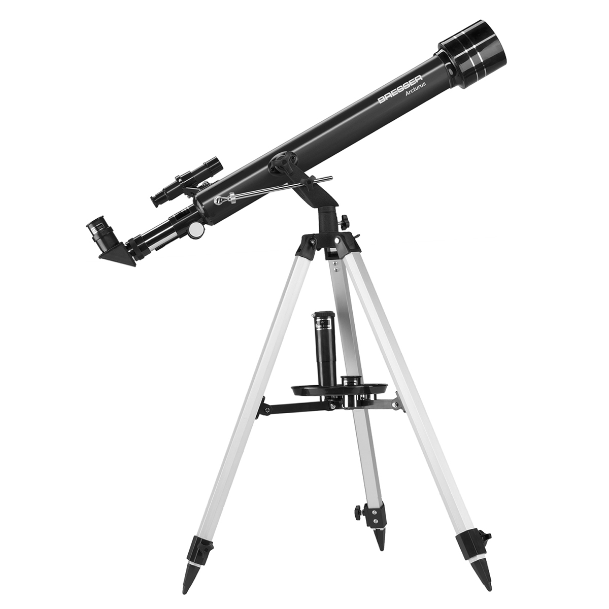 Bresser Arcturus 60/700 — класичний рефракторний телескоп на азимутальному монтуванні. Хороший вибір для першого телескопа дитині. Азимутальне монтування просте в експлуатації, штатив регулюється по висоті, має поличку для аксесуарів.