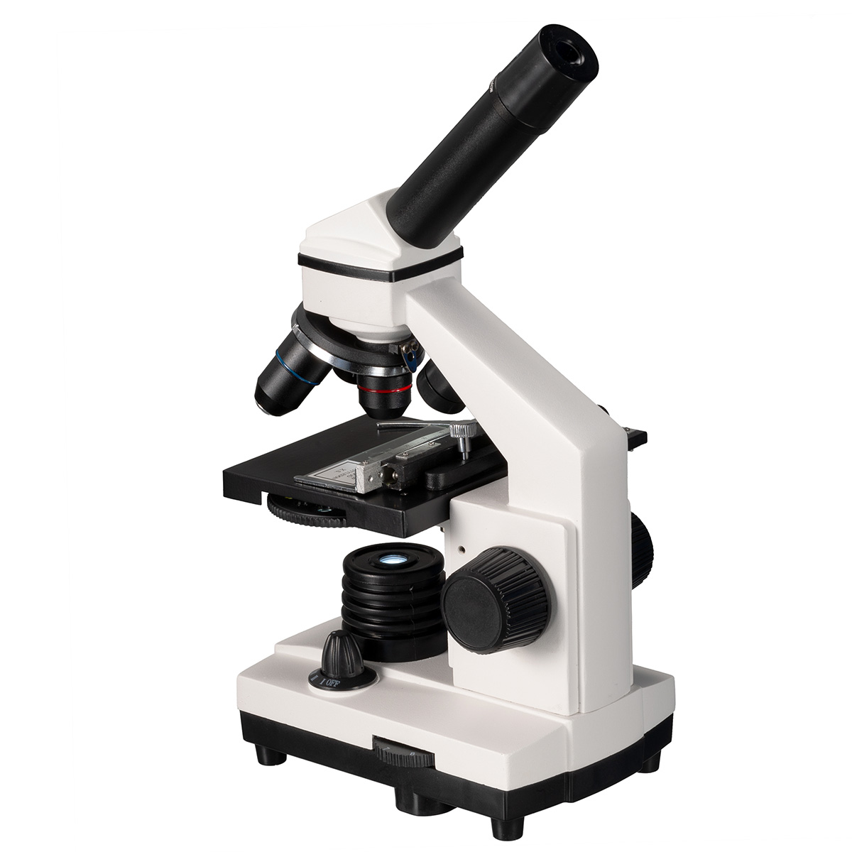 Шкільний мікроскоп Bresser Biolux NV 20х-1280х оснащений подвійною підсвіткою (зверху і знизу) для дослідження препаратів у відбитому та прохідному світлі. У набір вже входить кілька різнопланових зразків для спостережень.