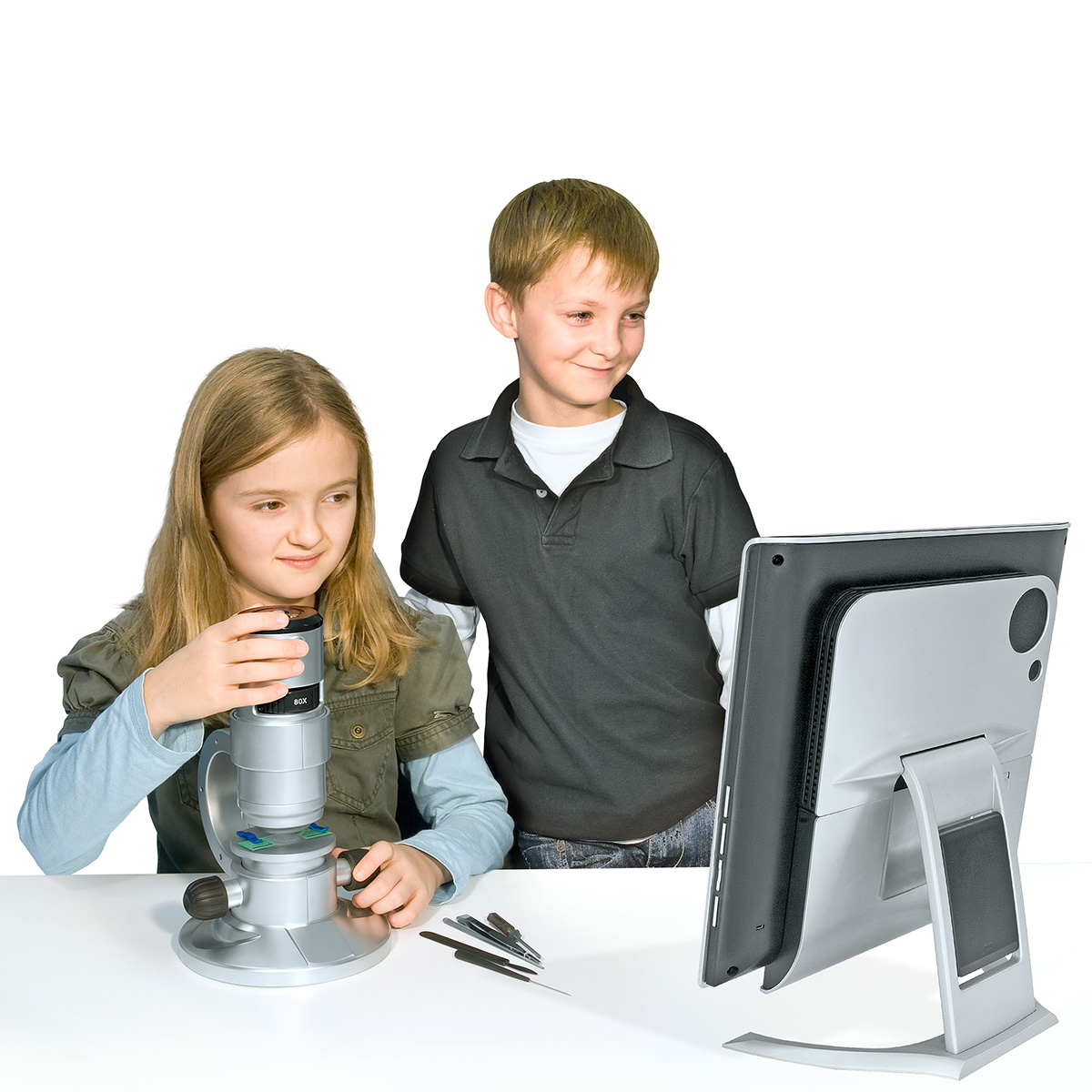 Цифровий мікроскоп Bresser Junior DM400 підключається до USB-порту комп'ютера і дозволяє не тільки вивчати об'єкти під збільшенням на екрані монітора, але і робити фото та відео.