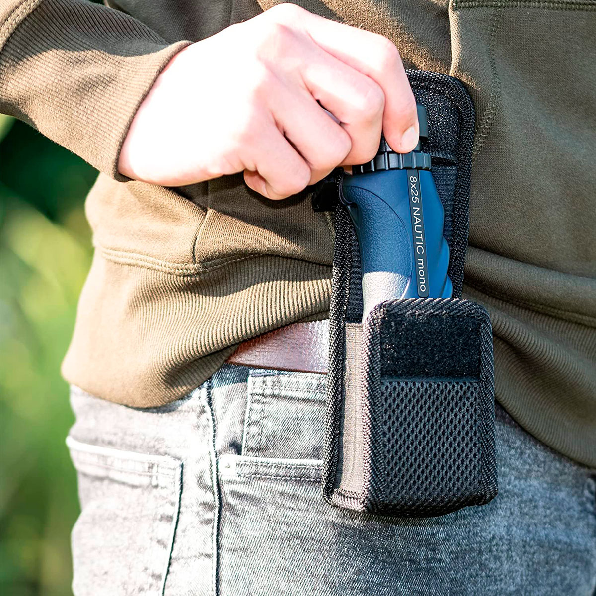 Збільшення 8x у поєднанні з об'єктивом діаметром 25 мм забезпечує оптимальний баланс між компактністю та ефективністю. Монокуляр дозволяє комфортно спостерігати за далекими об’єктами, зберігаючи високу деталізацію й контрастність. Зручне кільце фокусування на окулярі дозволяє швидко й точно налаштувати різкість під конкретного користувача. Поворотно-висувний наочник дозволяє зі зручністю вести спостереження в окулярах і без них.