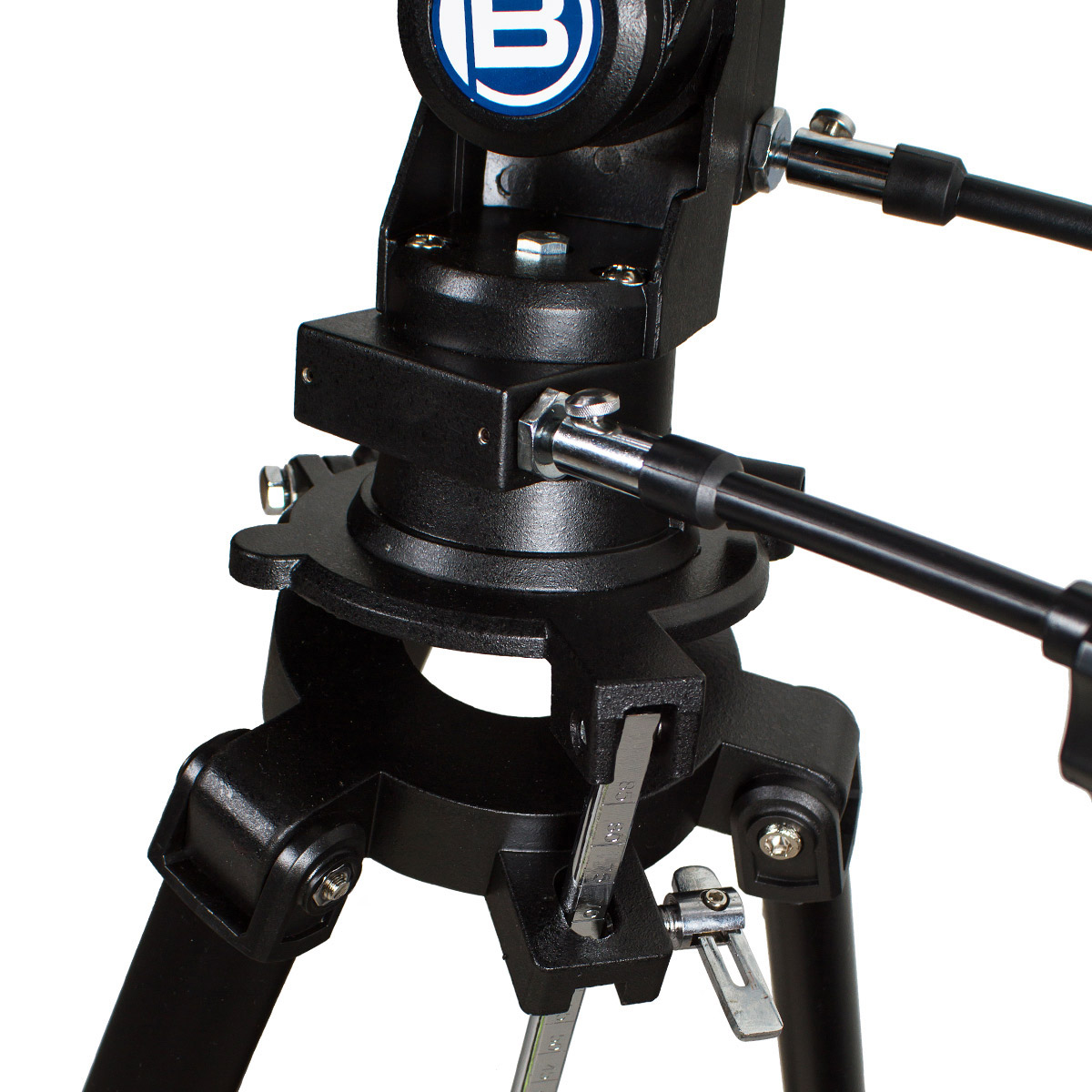 Монтування телескопа типу NG від компанії Bresser сконструйоване за принципом 2 в 1: спочатку користувач може освоїти елементарне наведення по азимуту і географічній широті, а потім може приступити до вивчення небесних тіл за допомогою осей прямого сходження і схилення. Для комфортного спостереження небесних тіл важливо компенсувати добове обертання Землі, щоб не випустити об'єкт з поля зору. Можливості даного монтування допоможуть в цьому. Штатив, на якому кріпиться голова монтування, має двосекційний алюмінієвий профіль з поличкою для аксесуарів. У комплект постачання входить діагональна призма і відмінний набір окулярів.