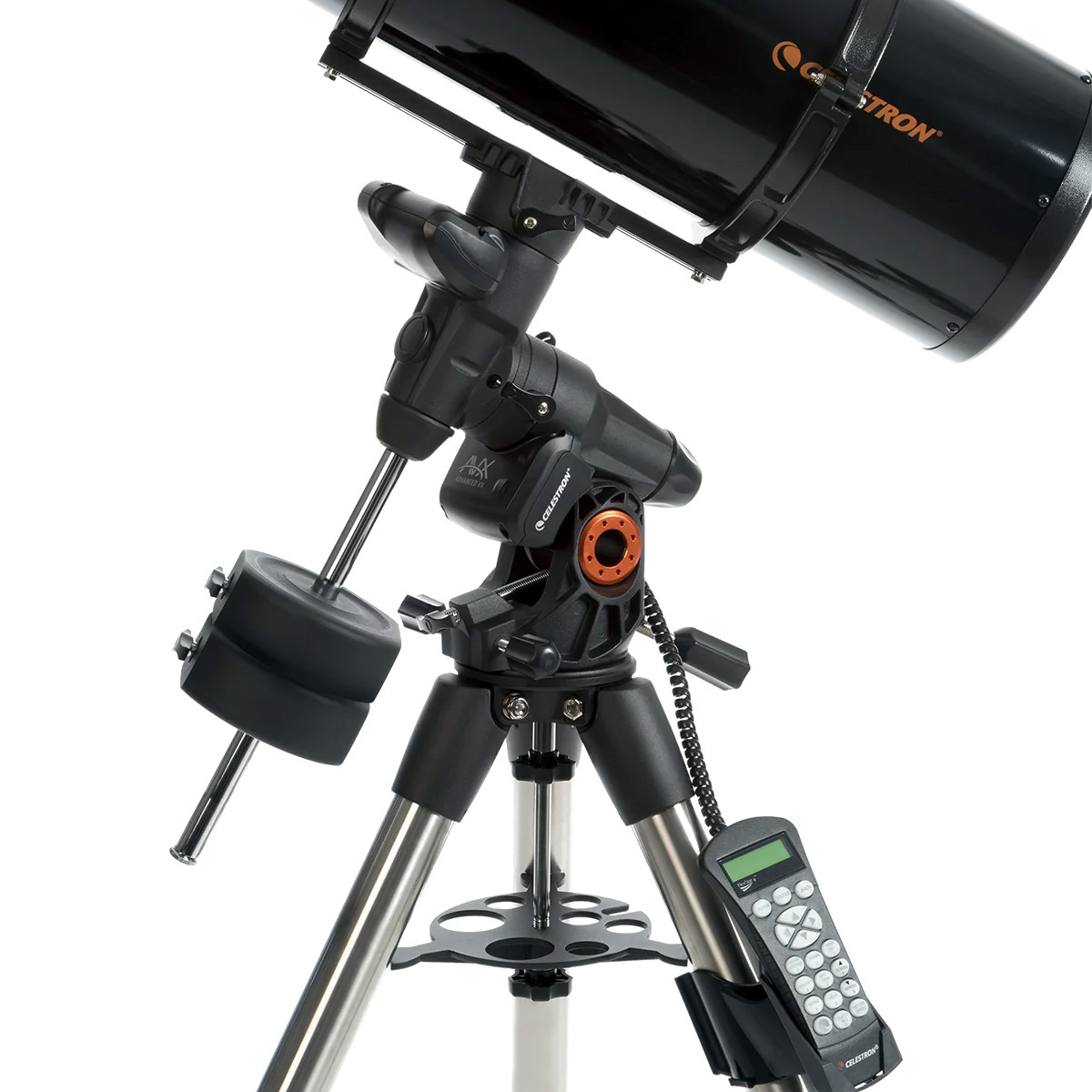 Телескоп комплектується посиленим екваторіальним монтуванням Advanced VX з комп'ютерним контролером (пультом), який містить понад 40 000 об’єктів у базі даних і підтримує численні сервісні функції. Нове монтування має не тільки поліпшений дизайн, а й оснащене потужнішими двигунами, що характеризуються високою продуктивністю. Монтування відмінно справляється з навантаженням від оптичної труби та фотоаксесуарів, які можуть бути приєднані до неї. Встановлюється на міцний штатив зі сталевими ніжками регульованої висоти, що забезпечують досить широку стійку. Додатково штатив обладнаний зручним столиком для аксесуарів. Така жорстка конструкція дозволяє ефективно уникати можливих вібрацій.