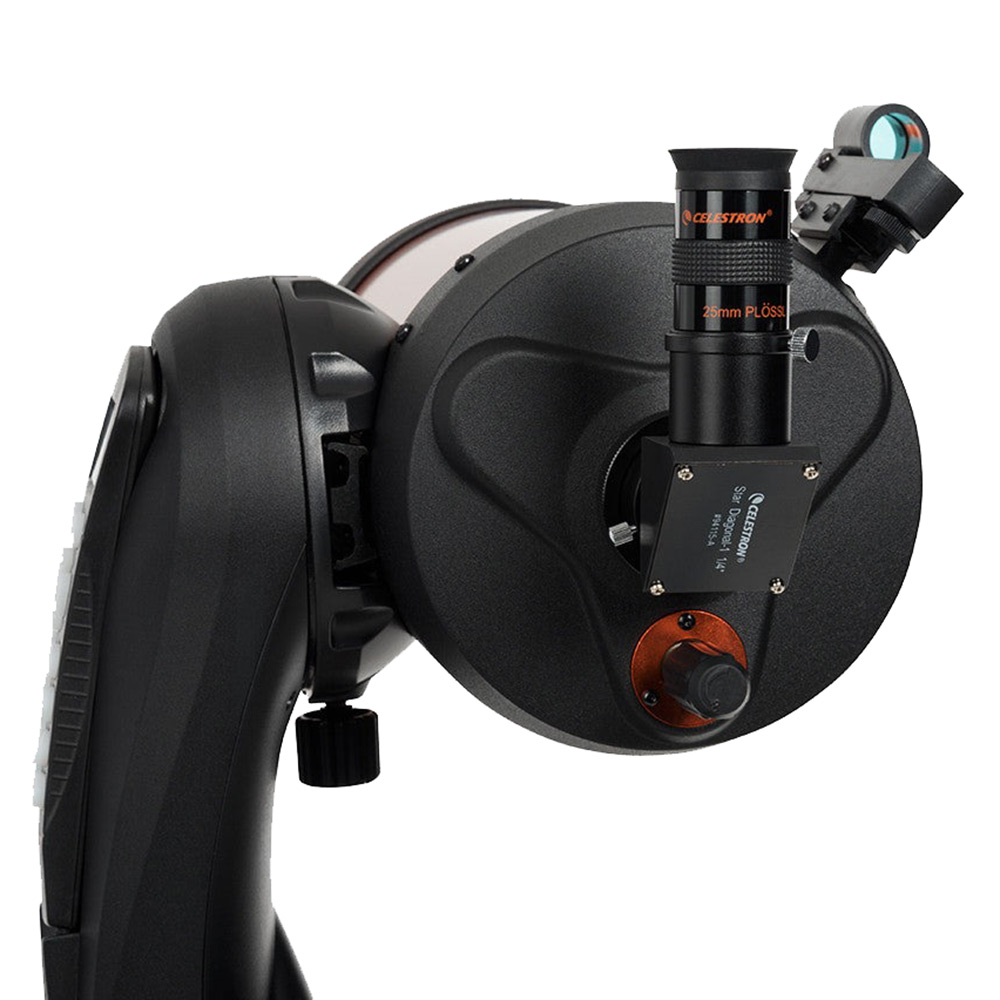 - Унікальна напіввилкова конструкція монтування розроблена та запатентована Celestron