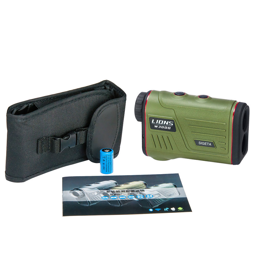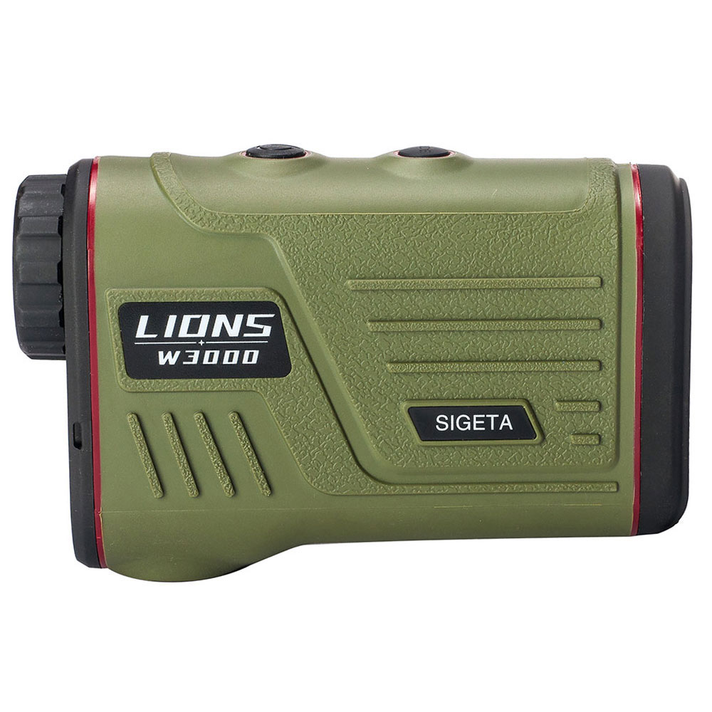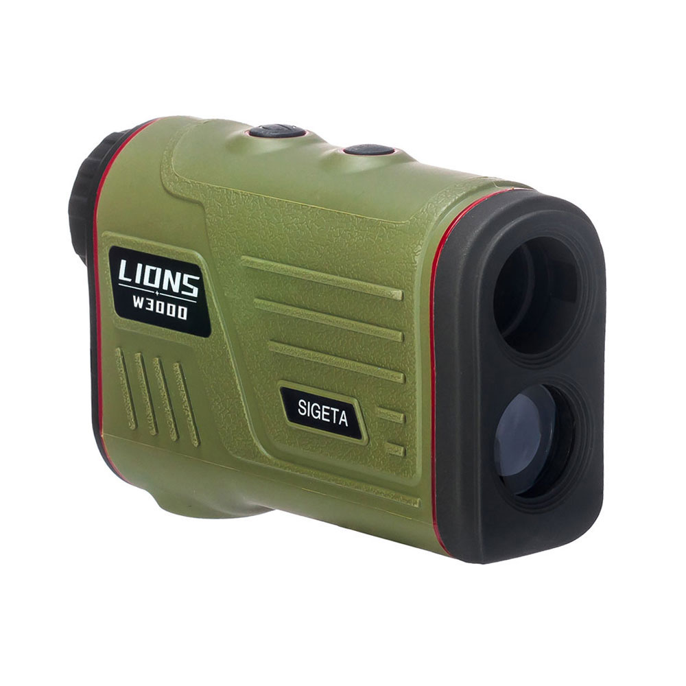 Далекомір SIGETA LIONS W3000A — якісний та високоточний прилад, який крім вимірювання дальності має ще багато корисних функцій. Максимальна дальність далекоміру становить 3000 м. За допомогою додаткової функції ви можете виміряти швидкість руху об'єкта. Лазер повністю безпечний для очей. Завдяки видошукачеві із збільшенням 6х та полю зору 135 м на 1 км, далекомір зручний для спостереження. У даній моделі лазерного далекоміра передбачена можливість встановлення на штатив. У комплекті з далекоміром поставляється батарея CR2 від якої відбувається живлення, чохол з кріпленням на пояс, серветка для оптики та інструкція.