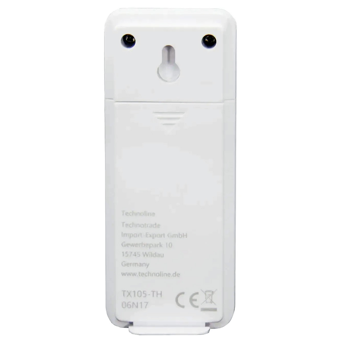 Датчик Technoline TX105TH вимірює температуру та вологість в місці свого розташування та передає показники до приладу, на дисплеї якого вони відображаються. Передача даних здійснюється на частоті 433.92 МГц та на відстані до 60 метрів прямої видимості.
