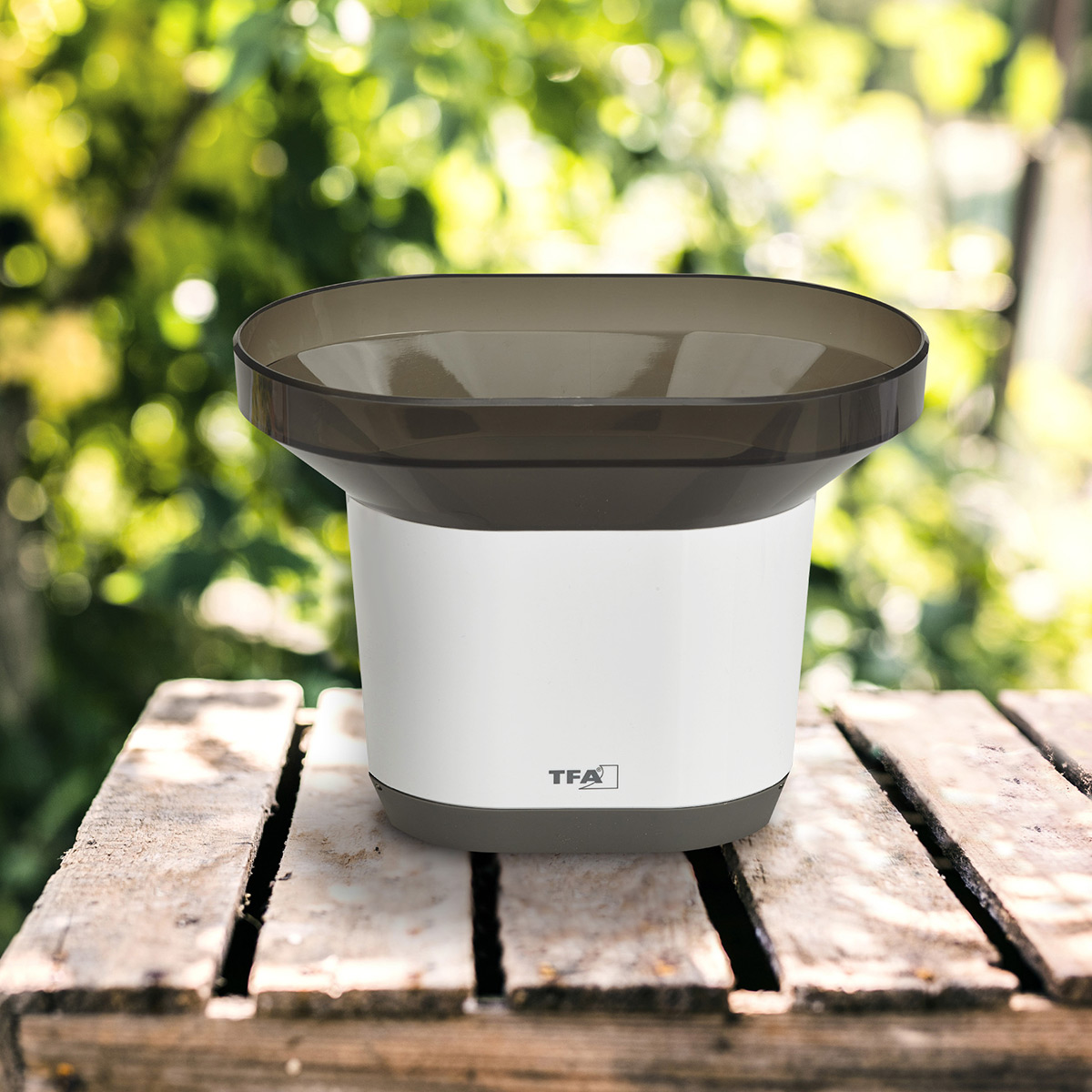 Датчик з високою точністю вимірює кількість опадів. Дані відображаються на дисплеї метеостанції та/або доступні в додатку TFA VIEW. Датчик допоможе господарям знати, коли поливати город або сад, стане в нагоді у сільському господарстві, будівництві або будь-якій іншій сфері, де важлива інформація про опади. Передача даних здійснюється на частоті 868 МГц та на відстані до 100 метрів прямої видимості.