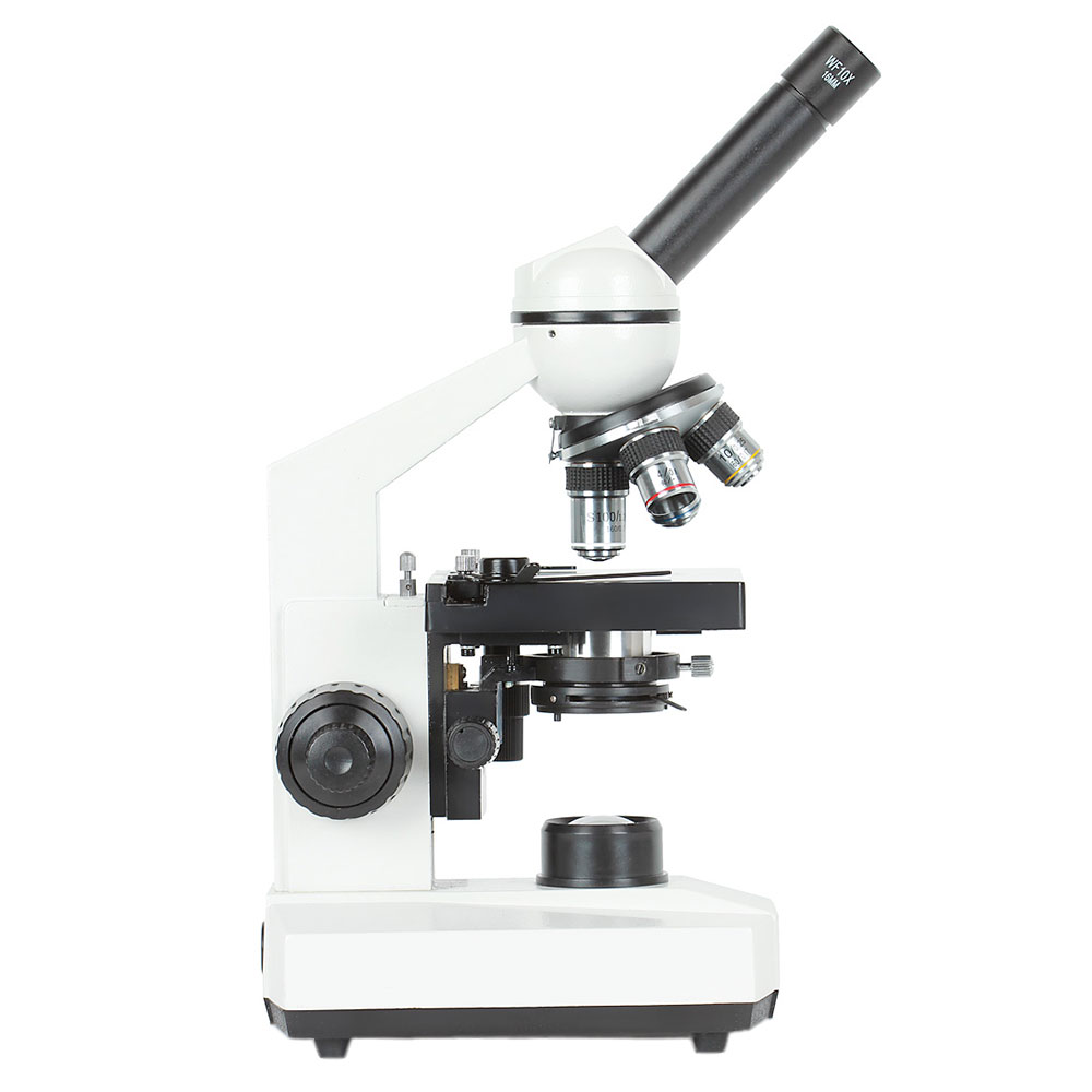 Міцний металевий корпус забезпечує тривалий термін роботи приладу. Мікроскоп оснащений монокулярною насадкою, яка дозволяє вести спостереження в окуляр, а також встановлювати цифрову камеру для виводу зображення на ПК. Насадка обертається на 360 градусів, а окулярний тубус розташований під кутом 45 градусів. У комплекті з мікроскопом поставляються 4 ахроматичні об'єктиви та ширококутний окуляр з просвітленням.