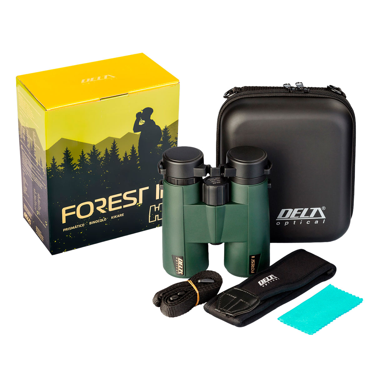 Delta Optical FOREST II 8x42 – ширококутний, добре захищений та ергономічний бінокль. Має оптичне збільшення 8х, об'єктив 42 мм, поле зору (149 м на 1 км), кут огляду 8.5°, призми типу Roof з барієвого крона (BaK-4) з фазокорегуючим покриттям та лінзи з повним багатошаровим просвітленням.
