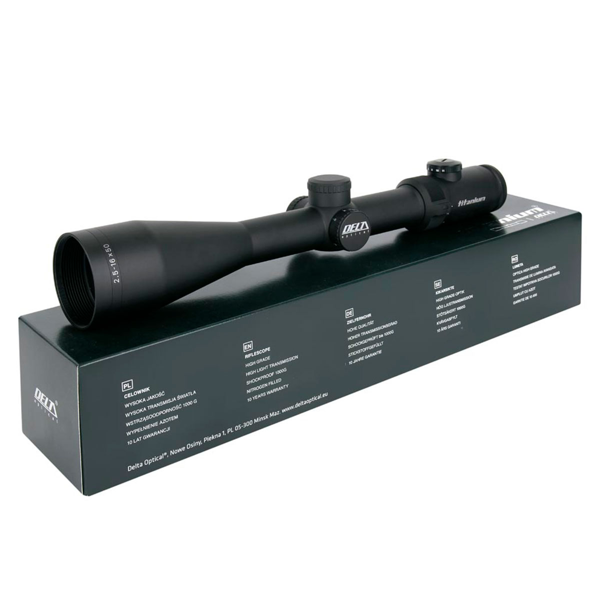 Корпус Delta Optical Titanium 2.5-16x50 SF 2D виконаний зі стійкого металу сплаву – 70% алюмінію, 20% – латунь та 10% – сталь. Приціл виготовляється у Японії.