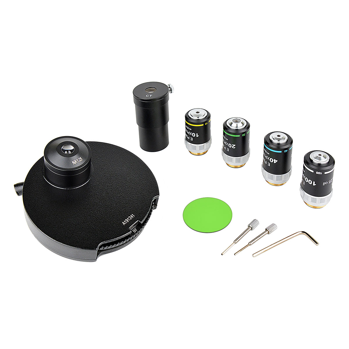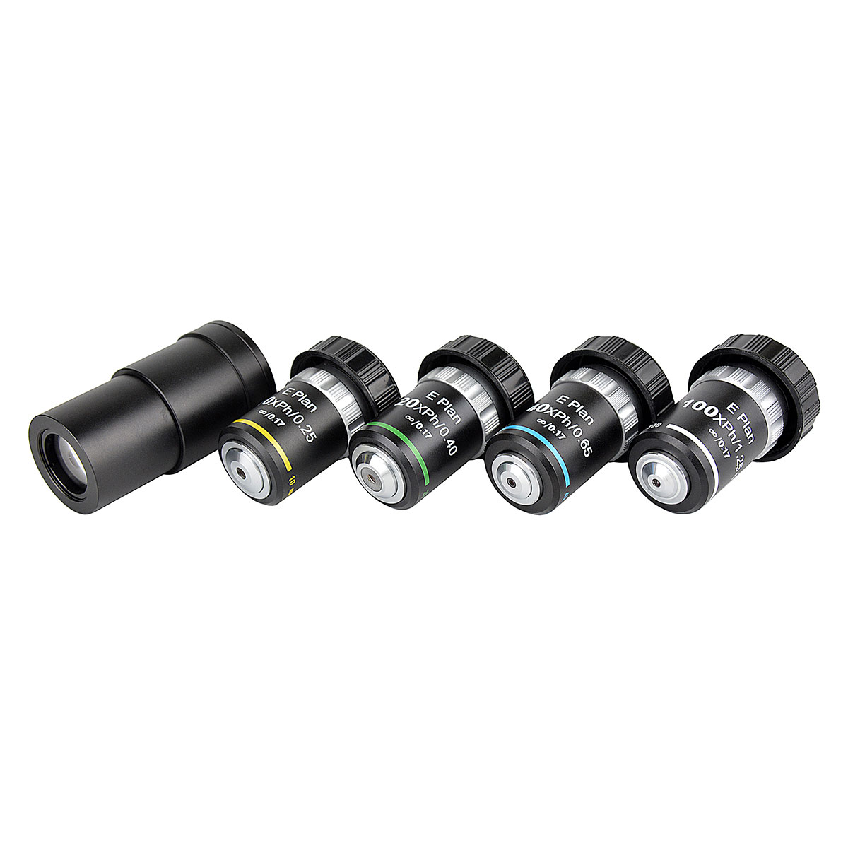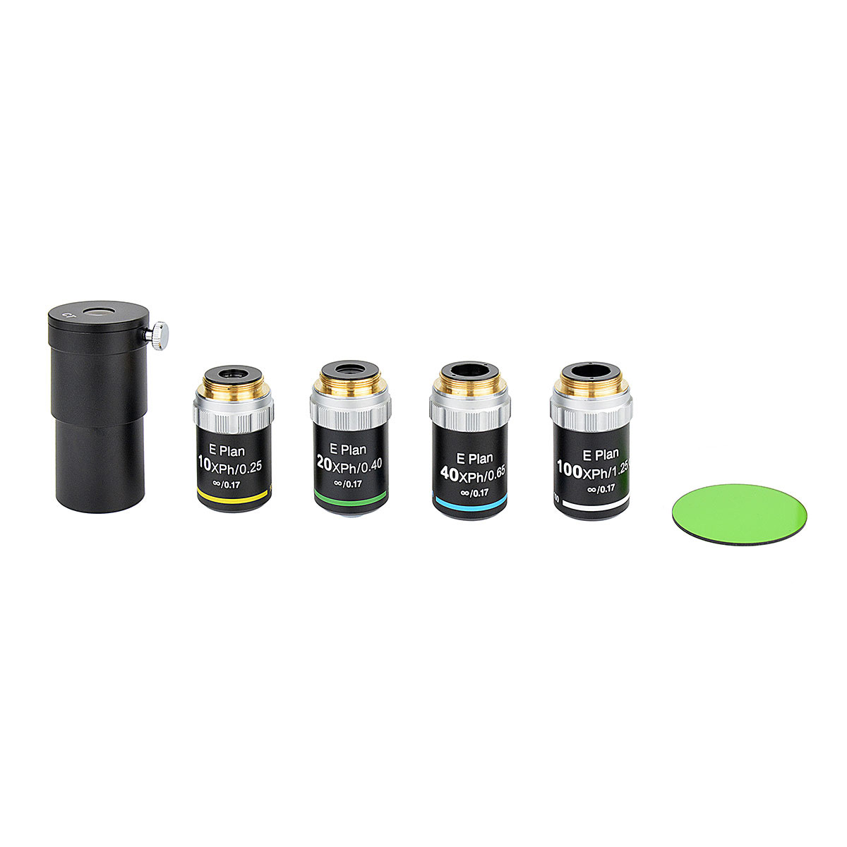 Фазово-контрастний набір SIGETA може використовуватись з будь-яким біологічним мікроскопом серії SIGETA BIOGENIC. До комплекту входить конденсор NA 1.25 з поворотним диском; чотири об'єктиви: E Plan Ph10x/0.25, E Plan Ph20x/0.40, E Plan Ph40x/0.65, E Plan Ph100x/1.25 OIL; допоміжний окуляр для налаштування фазового контрасту; зелений фільтр; набір інструментів.