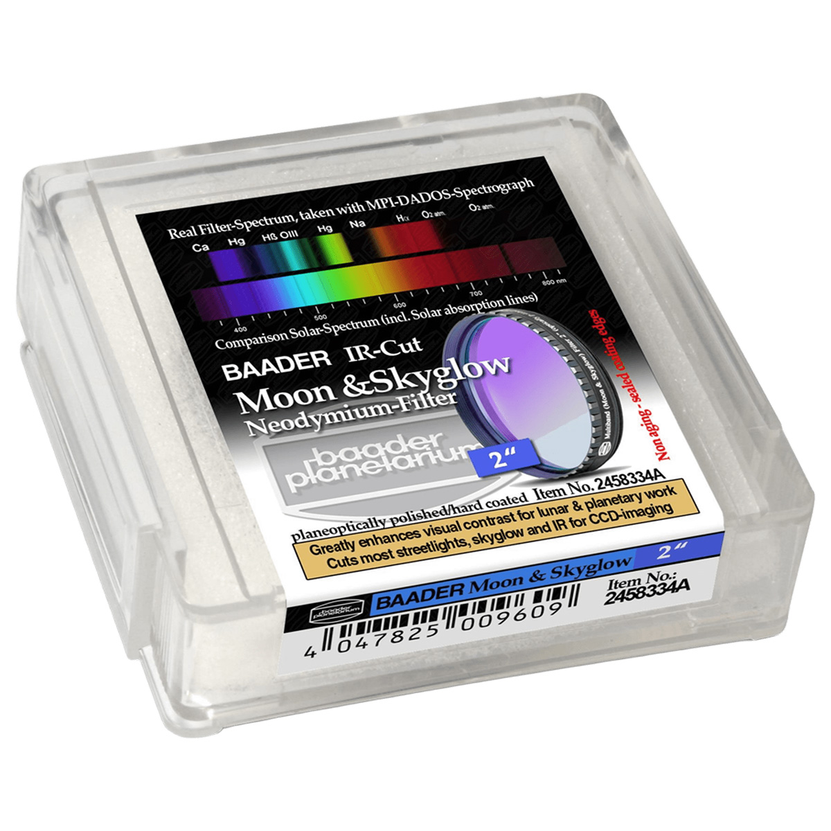 Фільтр Baader Planetarium Neodymium 2" постачається в індивідуальній пластиковій упаковці для надійного зберігання та транспортування.