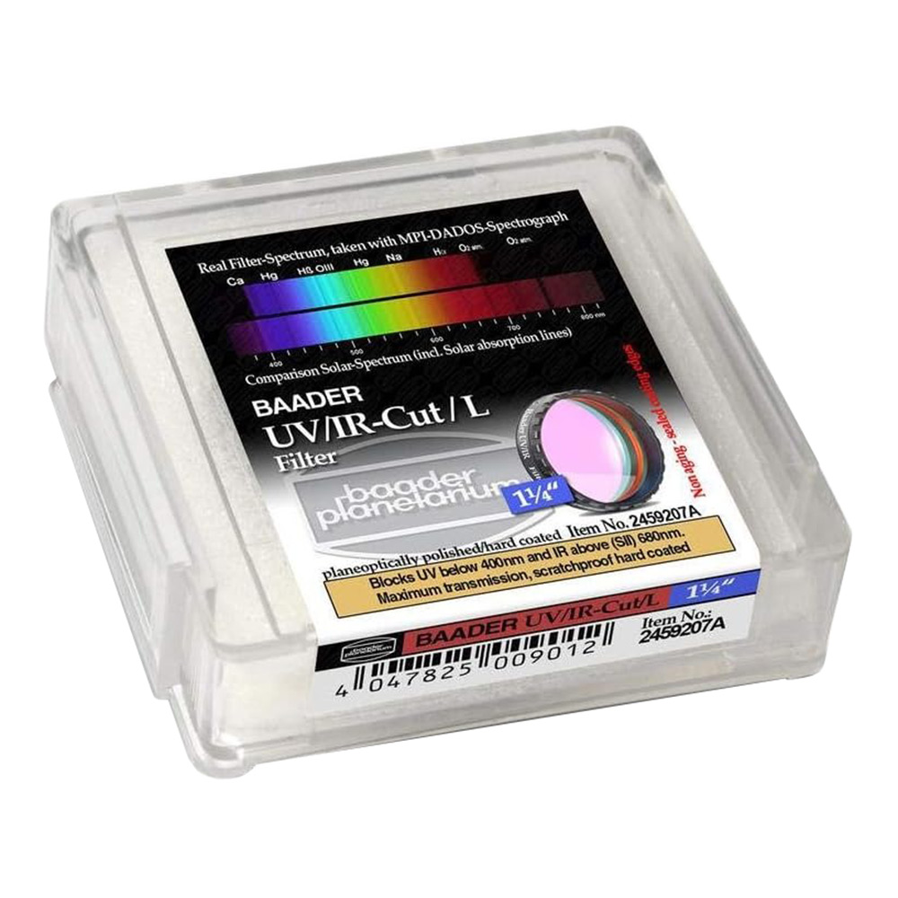 Фільтр Baader Planetarium UV-IR Cut, 1.25" використовується для блокування інфрачервоної та ультрафіолетової областей спектра при візуальних спостереженнях та занятті астрофотографією. Це кардинально збільшує різкість одержуваного зображення, особливо при зйомках планет.