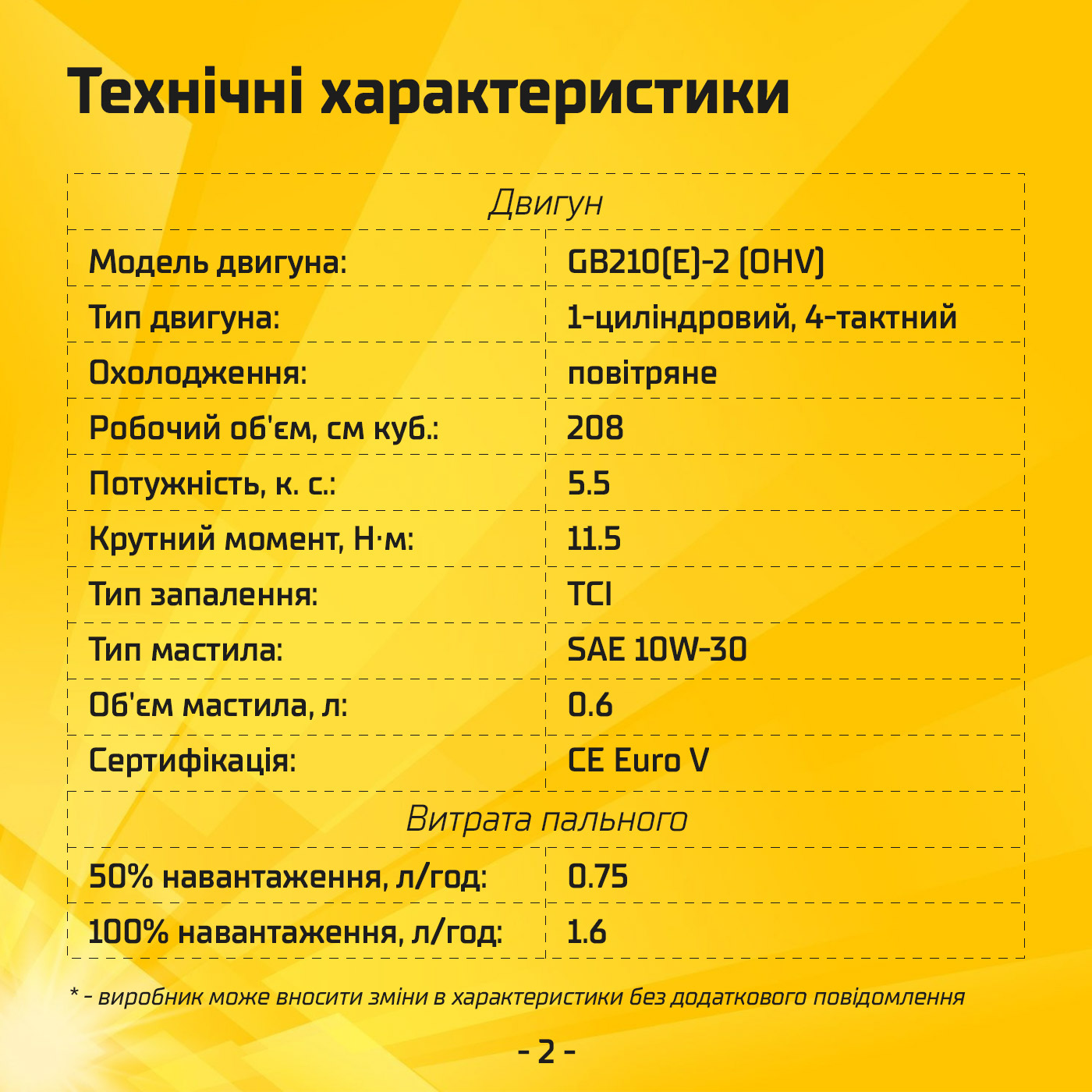 Генератор оснащено вбудованим електростартером, який дозволить швидко запустити пристрій за допомогою звичайної кнопки. Впоратися з цією процедурою тепер може будь-хто. Проста і зручна панель керування має вольтметр та дві захищені (IP44) розетки на 16А з вихідною напругою 230В.