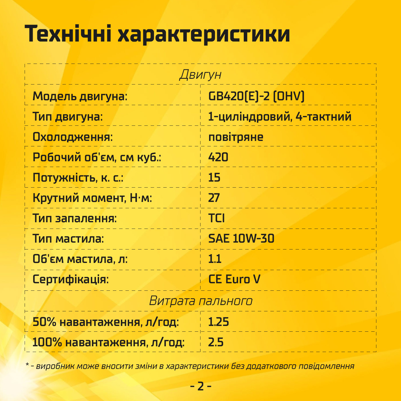 - Паливно-мастильні матеріали не входить до комплекту постачання.