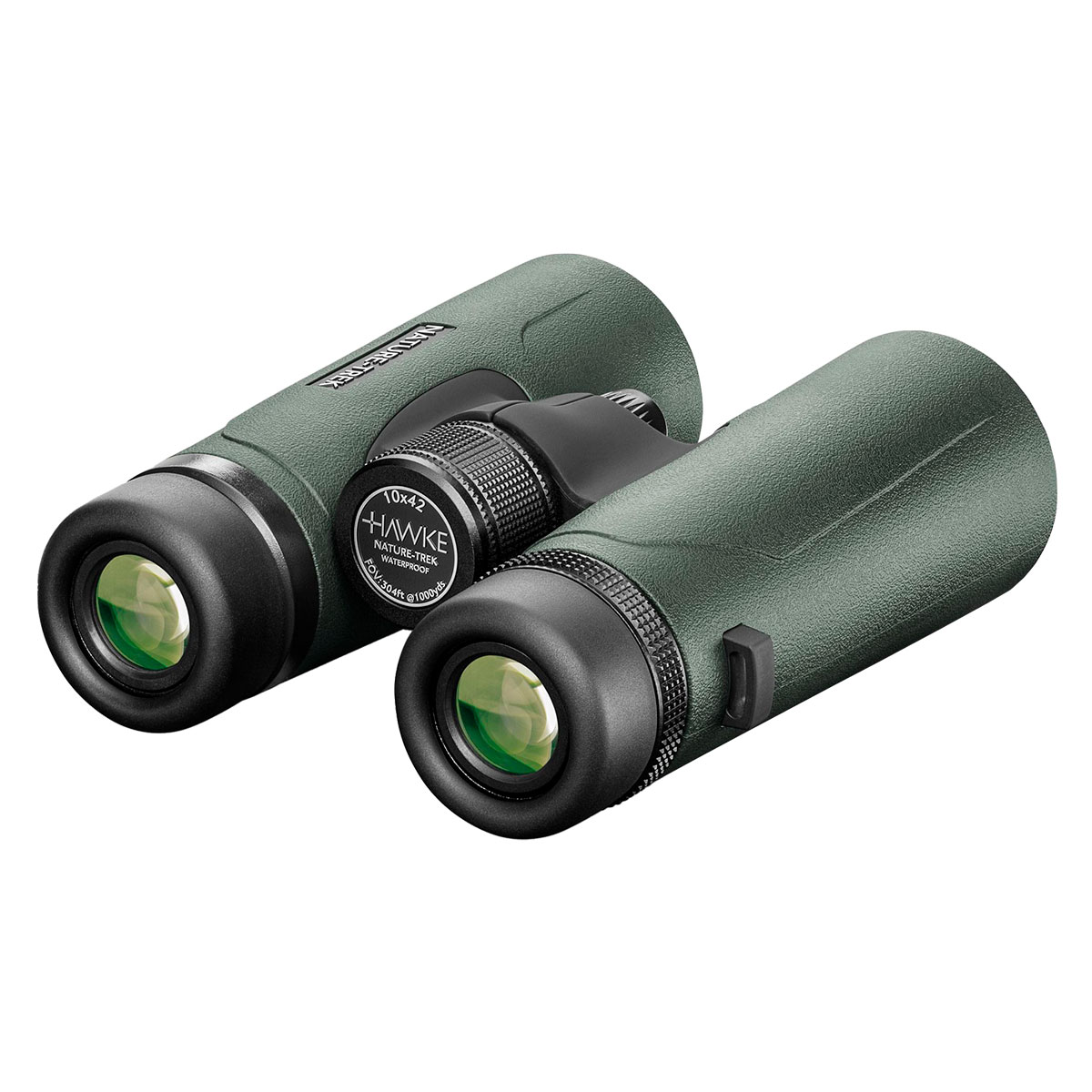 Hawke Nature Trek 10x42 Top Hinge (Green) – багатофункціональний бінокль з якісною оптикою, широким полем зору, оптичним збільшенням 10x та сучасною конструкцією петлі "Верхній міст", яка забезпечує зручніший захват і дає перевагу у вазі в порівнянні з класичною конструкцією шарніра.