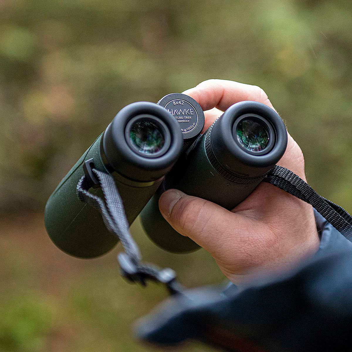 Hawke Nature Trek 8x42 Top Hinge (Green) – це поєднання сучасного дизайну, високоякісної оптики та зручної ергономіки. У цій моделі використовуються Roof-призми, скло BaK-4 та багатошарове покриття лінз (Fully multi-coated), що в їх комбінації дає яскраву, контрастну, різку та деталізовану картинку без віньєтування.
