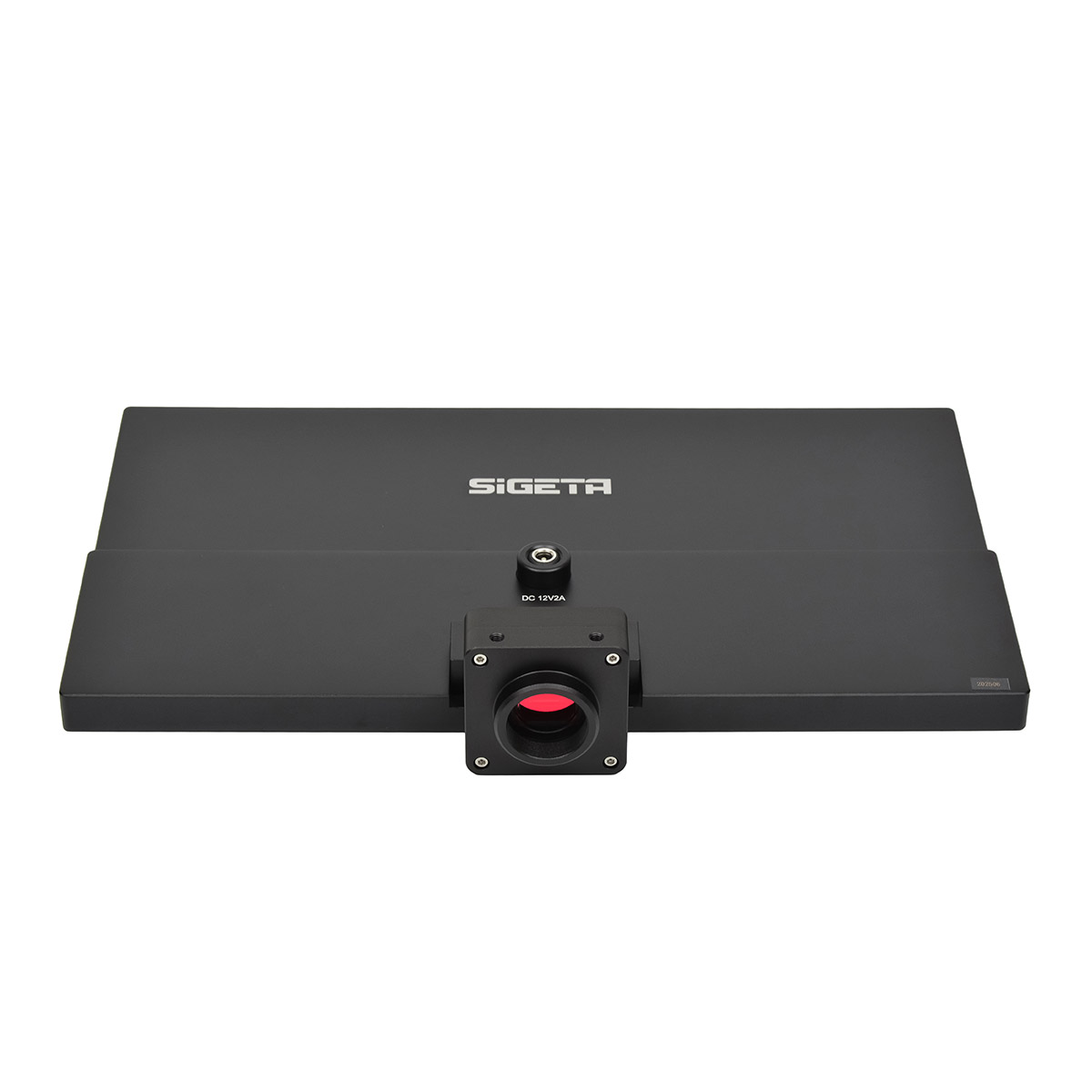 SIGETA MCAM4K Viewer HD 13.3" – професійна відеосистема для мікроскопії, яка забезпечує висококласну візуалізацію досліджень зі світлових мікроскопів різних типів. Система складається з 8-мегапіксельної HDMI-камери та 13.3-дюймового дисплея, працює повністю незалежно (без підключення до комп'ютера) і може застосовуватися для фото- та відеозйомки безпосередньо з мікроскопа, з подальшим збереженням даних на опціональний USB-накопичувач. Завдяки підтримці Wi-Fi, HDMI та USB інтерфейсів, дозволяє створювати інтерактивні навчальні класи з мікроскопії, транслювати зображення на зовнішні монітори та синхронізуватися з ПК.