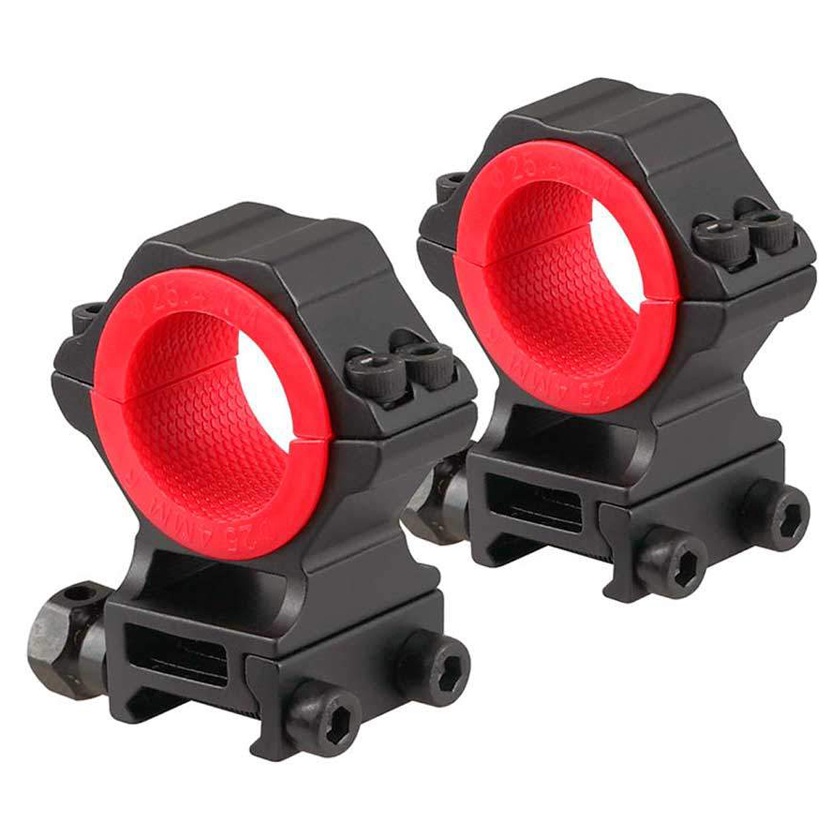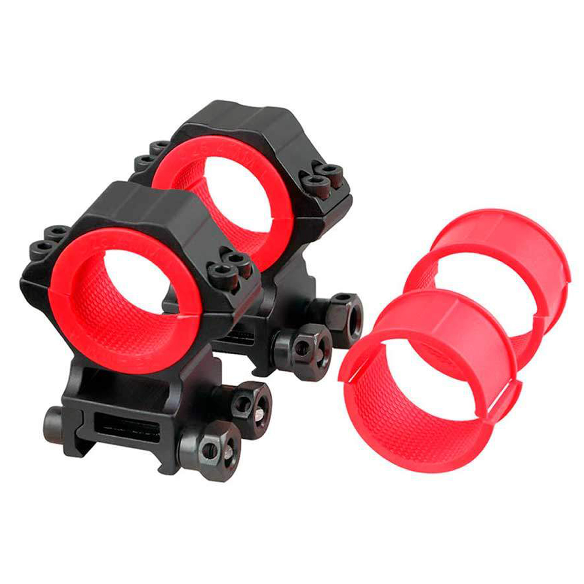 Discovery Optics Scope Mount Rings 25.4/30/34 мм High — це кільця призначені для надійного встановлення оптичних прицілів з діаметром трубки 25.4 мм, 30 мм або 34 мм на зброю, оснащену кріпленням "Ластівчин хвіст". Завдяки двом наборам полімерних вставок, які входять до комплекту, забезпечується точне та щільне кріплення прицілів з різним діаметром корпусу без люфту й ризику пошкодження. Висота основи становить 16 мм — це клас «високих» кілець (High), що надає достатній кліренс між прицілом і стволом або цівкою, особливо корисний при використанні оптики з великою лінзою або на зброї зі встановленими додатковими елементами.