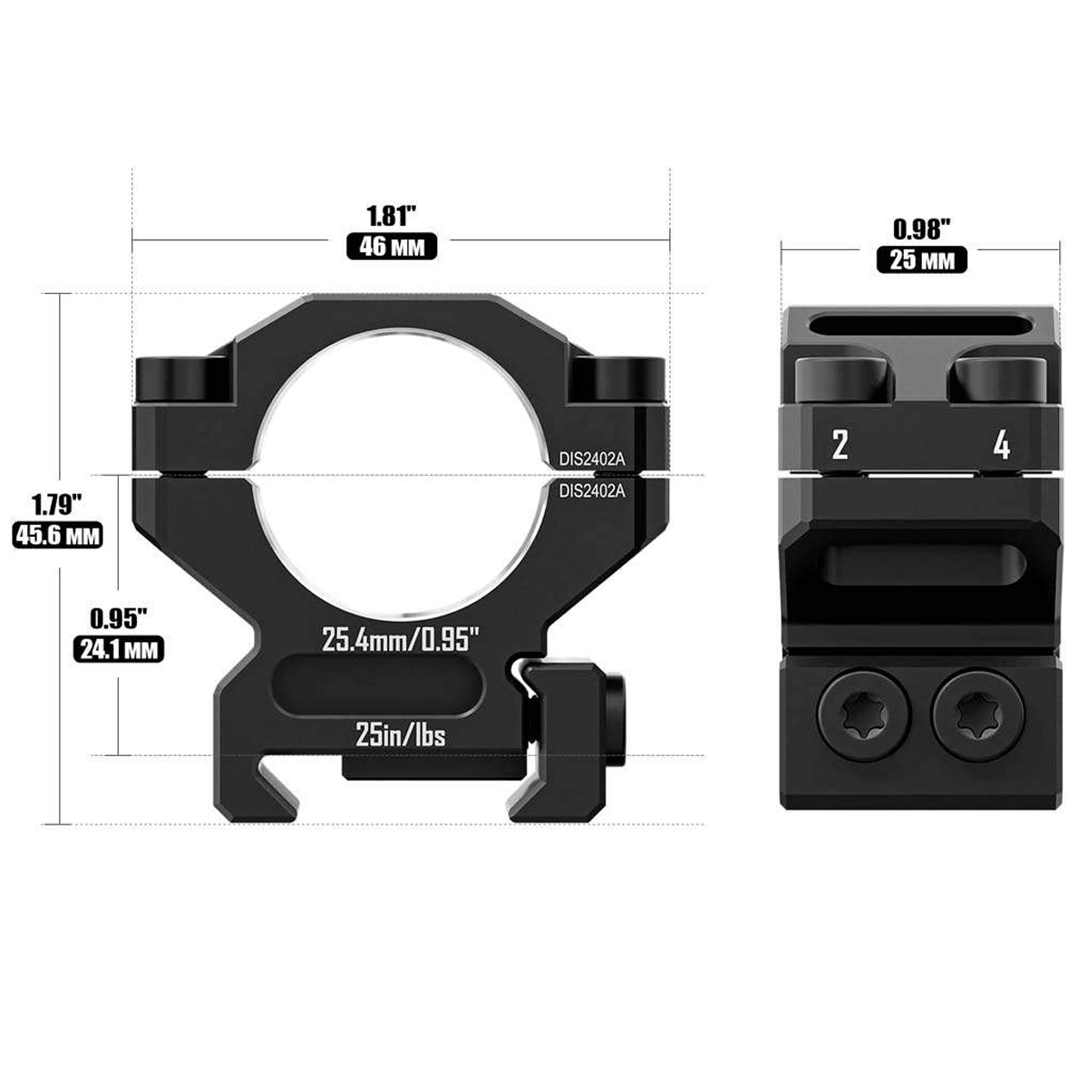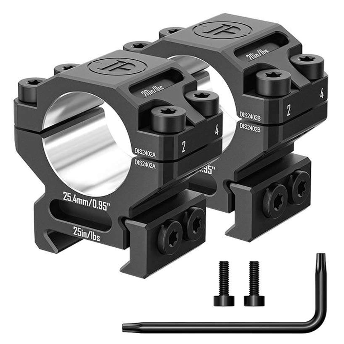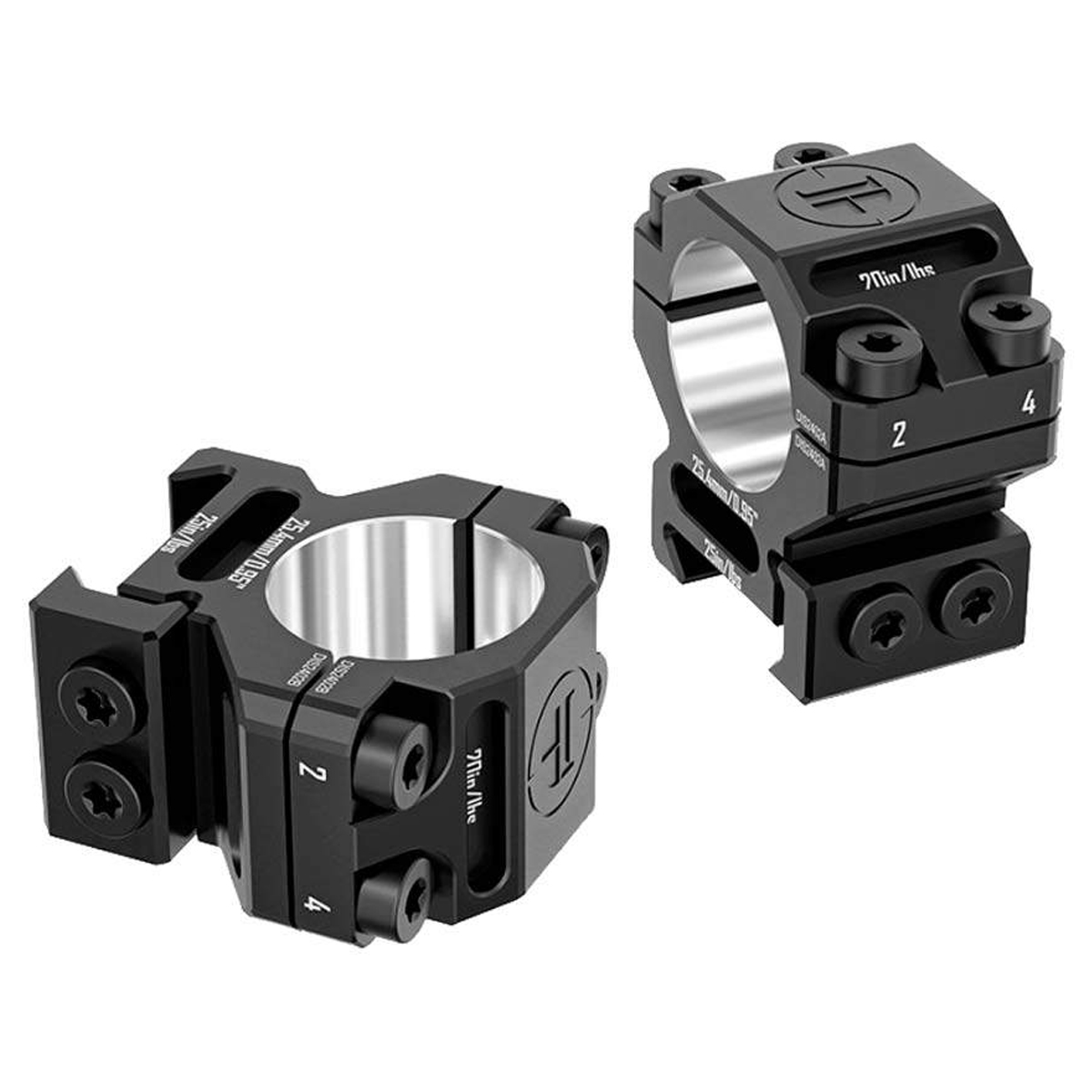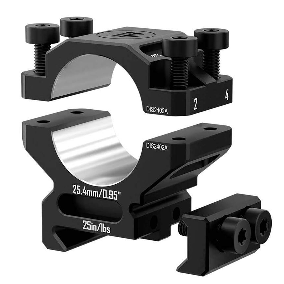 Кільця сумісні з планками стандарту Picatinny, надаючи широкий діапазон використання з сучасними платформами зброї. Висота оптичної осі складає 24.1 мм, це дозволяє розташувати приціл максимально близько до ствола, знижуючи паралакс і покращуючи прицілювання на ближніх дистанціях. Виготовлені з високоякісного авіаційного алюмінію марки 6061-T6, кільця мають високу міцність при невеликій вазі. Поверхня покрита анодуванням Type III, забезпечуючи стійкість до корозії, подряпин та механічного зносу навіть за умов інтенсивного використання.