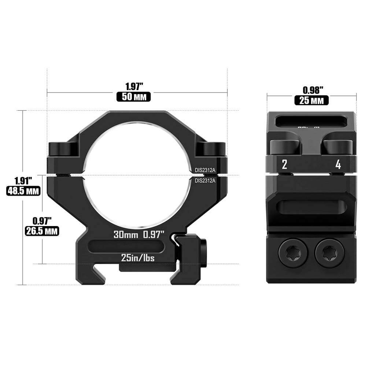 Кільця сумісні з напрямними стандарту Picatinny, це гарантує надійне та універсальне кріплення на широкому спектрі сучасної зброї. Оптична вісь при встановленні знаходиться на висоті 26.5 мм, що створює ідеальний баланс між комфортом стрільця та ефективною роботою прицілу. Конструкція виготовлена з авіаційного алюмінію 6061-T6, надаючи високу механічну міцність при збереженні невеликої ваги. Завдяки анодуванню Type III поверхня має підвищену стійкість до подряпин, корозії та впливу агресивних середовищ, роблячи ці кільця довговічними навіть у складних польових умовах.
