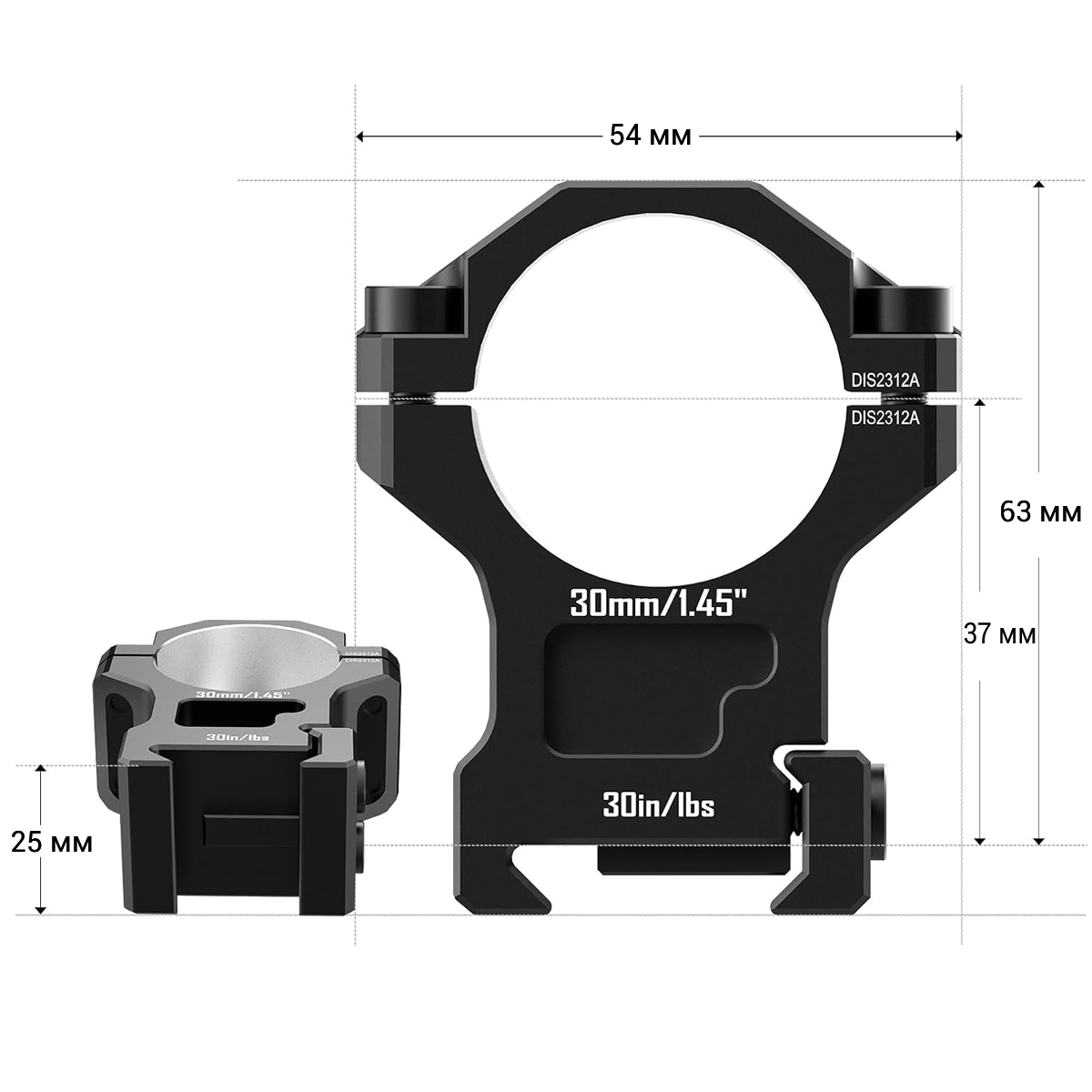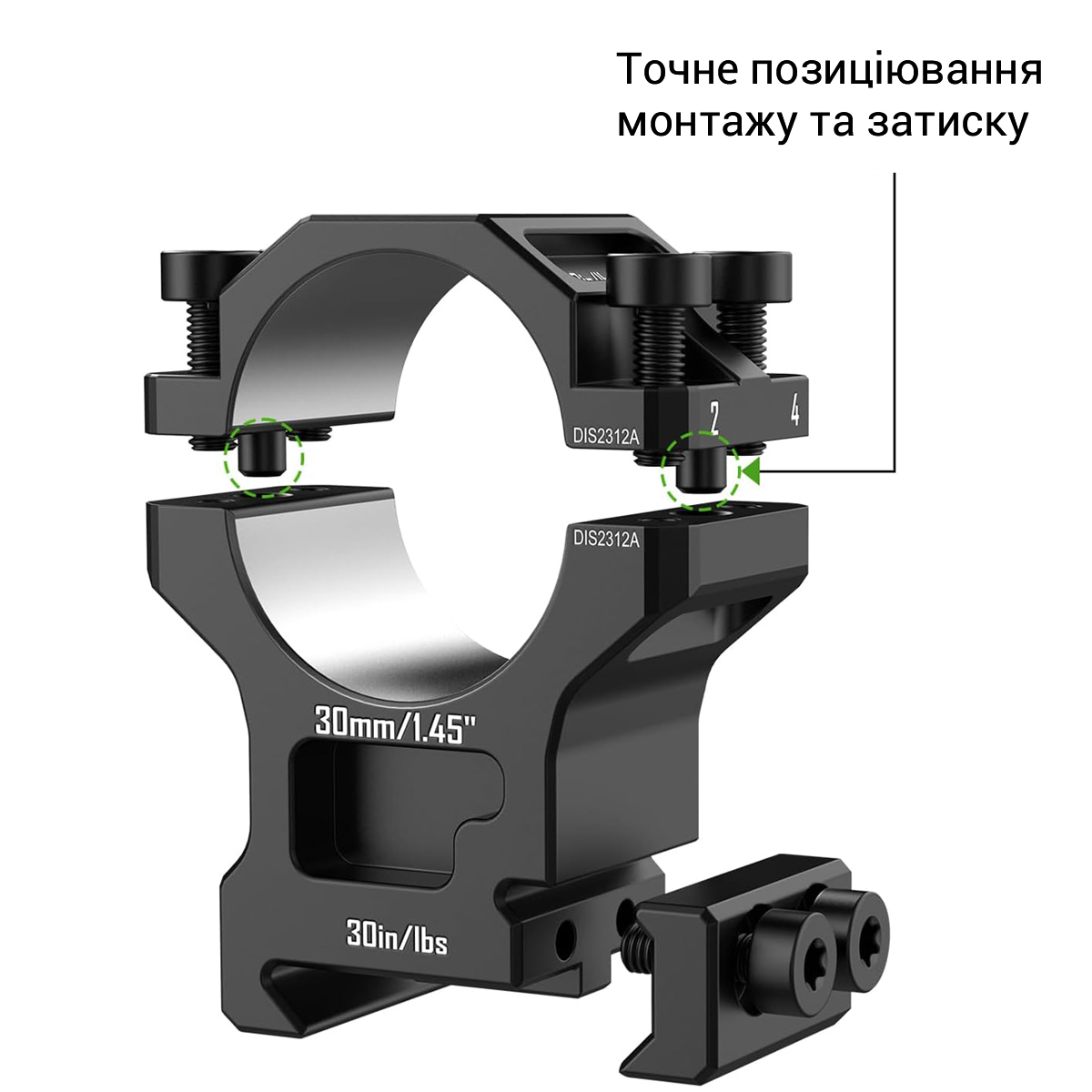 Кільця DISCOVERY OPTICS Scope Mount Rings 7075 30 мм (високі) Picatinny