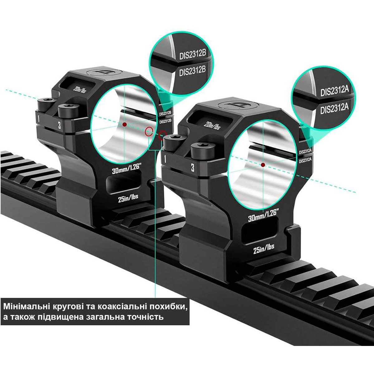 - Кільця DISCOVERY OPTICS Scope Mount Rings 6061 Series 30 мм (середні) Picatinny